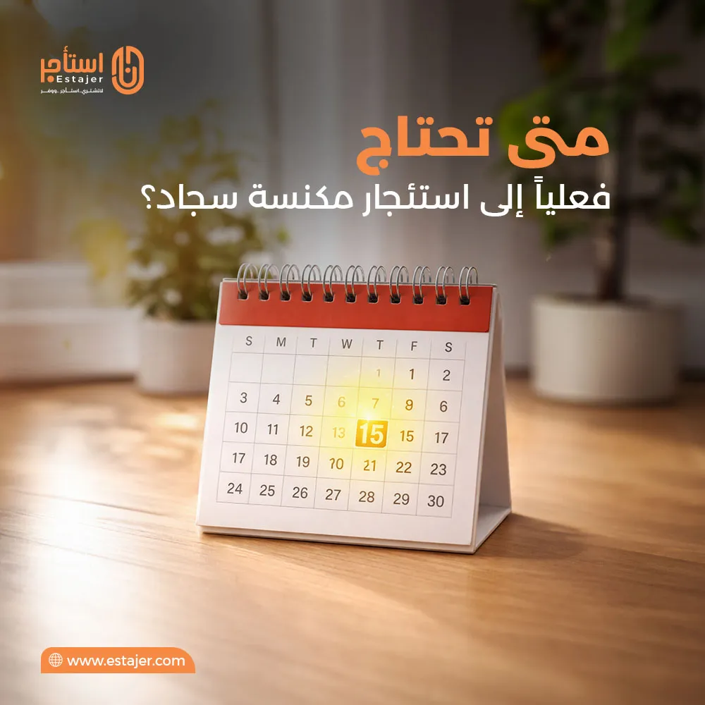 كثير جداً من الناس يفضلون استئجار مكنسة سجاد ليوم واحد كامل فقط لـ تنظيف المنزل بالكامل بشكل شامل. السعر اليومي عادة يتراوح بين 80-200 ريال حسب نوع الجهاز.