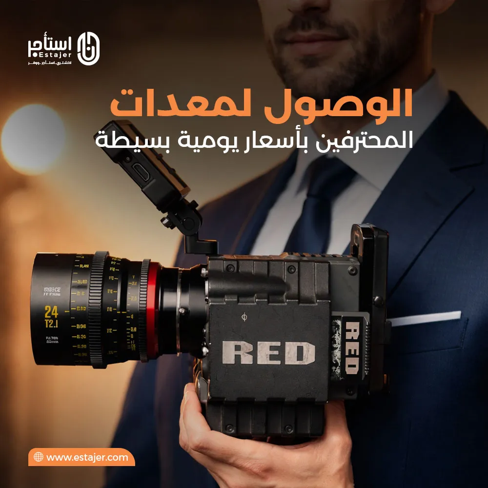 بدلاً من دفع 40 ألف ريال أو أكثر في عتاد تصوير كامل ومتنوع، يتيح لك استئجار إلكترونيات التصوير الاحترافية الوصول السهل والسريع لأفضل الكاميرات السينمائية العالمية المشهورة (مثل RED أو ARRI أو Sony Cinema) بأسعار يومية أو أسبوعية بسيطة ومعقولة جداً، مما يرفع جودة محتواك الإبداعي بشكل احترافي بـ "صفر" ديون أو التزامات مالية طويلة الأمد.