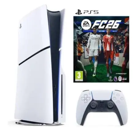 Sony playstation 5 with controller and FIFA 26 game
