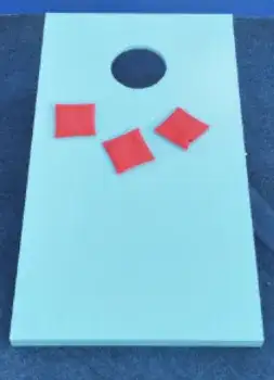 Players throw bean bags aiming to land them in the designated holes to score points. - Length 0.54 metres - Width 0.94 metres
