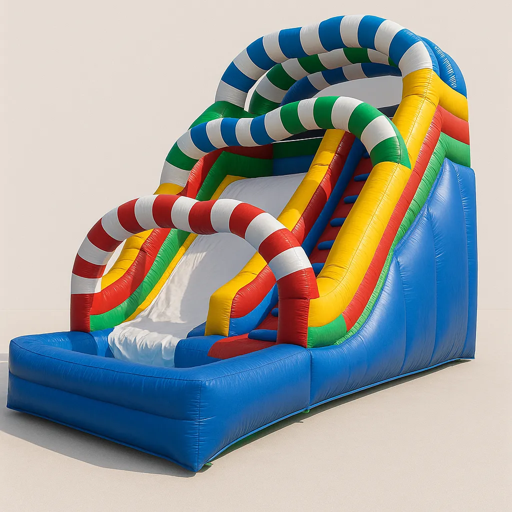 Enjoy a colorful and fun summer experience with the Candy Water Slide, designed especially for kids and families. Dimensions: Length: 6 meters Width: 3 meters Height: 5 meters Features: Attractive candy-inspired colorful design to delight children. Made of high-quality, water-resistant, and easy-to-clean materials. Easy setup and safe for children under supervision. Perfect for chalets, home gardens, clubs, and recreational areas. Ideal for kids’ parties, family events, and fun summer activities. Delivery: Available in Riyadh and nearby cities. Rental Terms: Any fees imposed by the chalet owner are the renter's responsibility, and the chalet owner must be informed. Keep the slide safe from sharp objects and damage. Children’s safety is the responsibility of their guardians. Booking is confirmed by filling in the details and sending the location. The slide is received in the morning after Fajr prayer, regardless of setup time. Filling the pool or soap is the renter’s responsibility. Stop using the slide during strong winds. Booking constitutes acceptance of all terms.