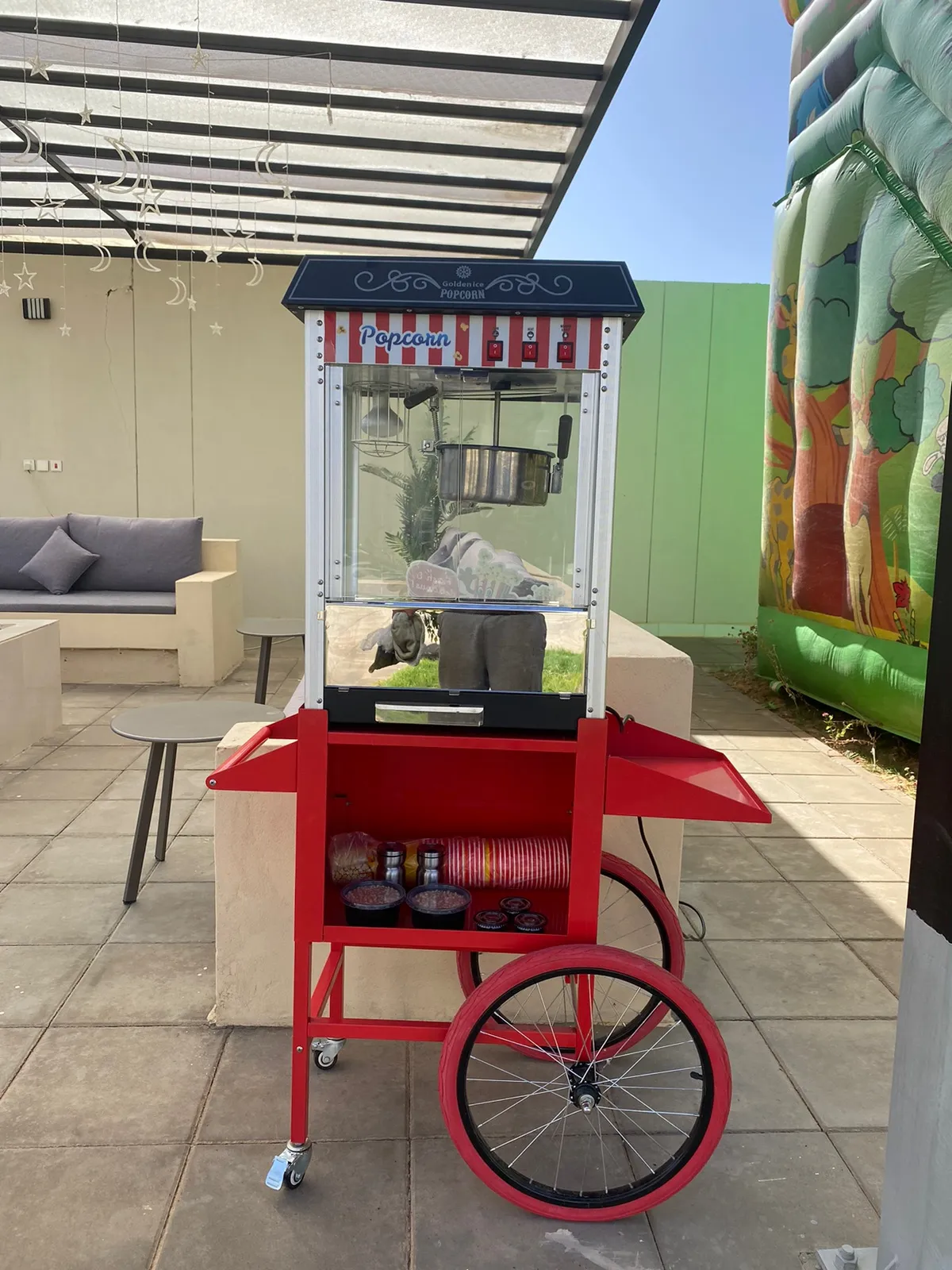 A distinctive and practical popcorn cart including 30 cups, offered at an affordable price with free delivery service. Designed to serve fresh, hot popcorn at parties, family gatherings, and large events. Easy to use and transport, adding a fun and tasty touch to any occasion. Features: Includes 30 popcorn cups Compact and modern design Free and fast delivery Perfect for parties and events