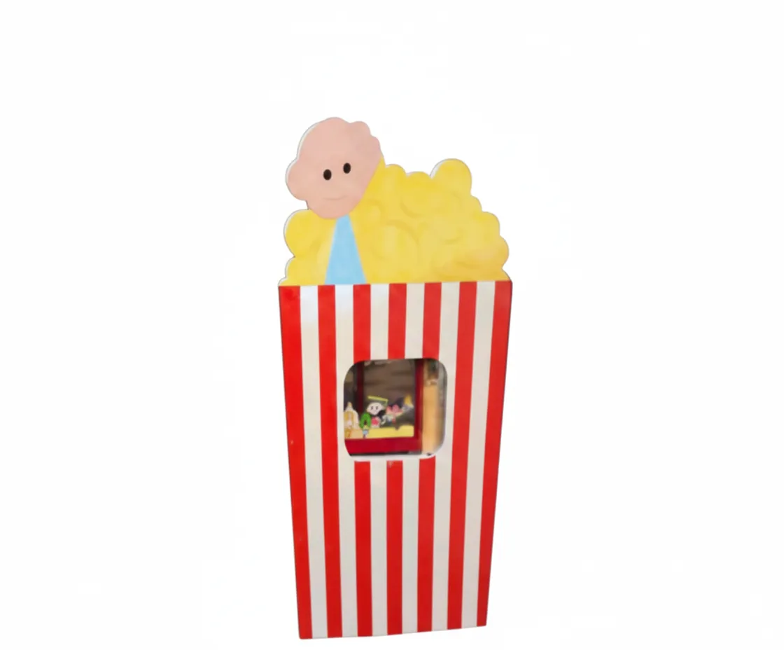 Add an attractive cinematic touch to your hospitality corner with the classic red and white striped popcorn model. This decor features an elegant traditional design that highlights the aesthetics of the popcorn station, making it a key attraction at events and festivals. Designed as a distinctive frame for the popcorn machine, it adds a professional and organized character to the hospitality experience provided to the audience. Key Features: Classic striped design, eye-catching vibrant colors, and a lightweight structure that is easy to coordinate with professional popcorn machines.