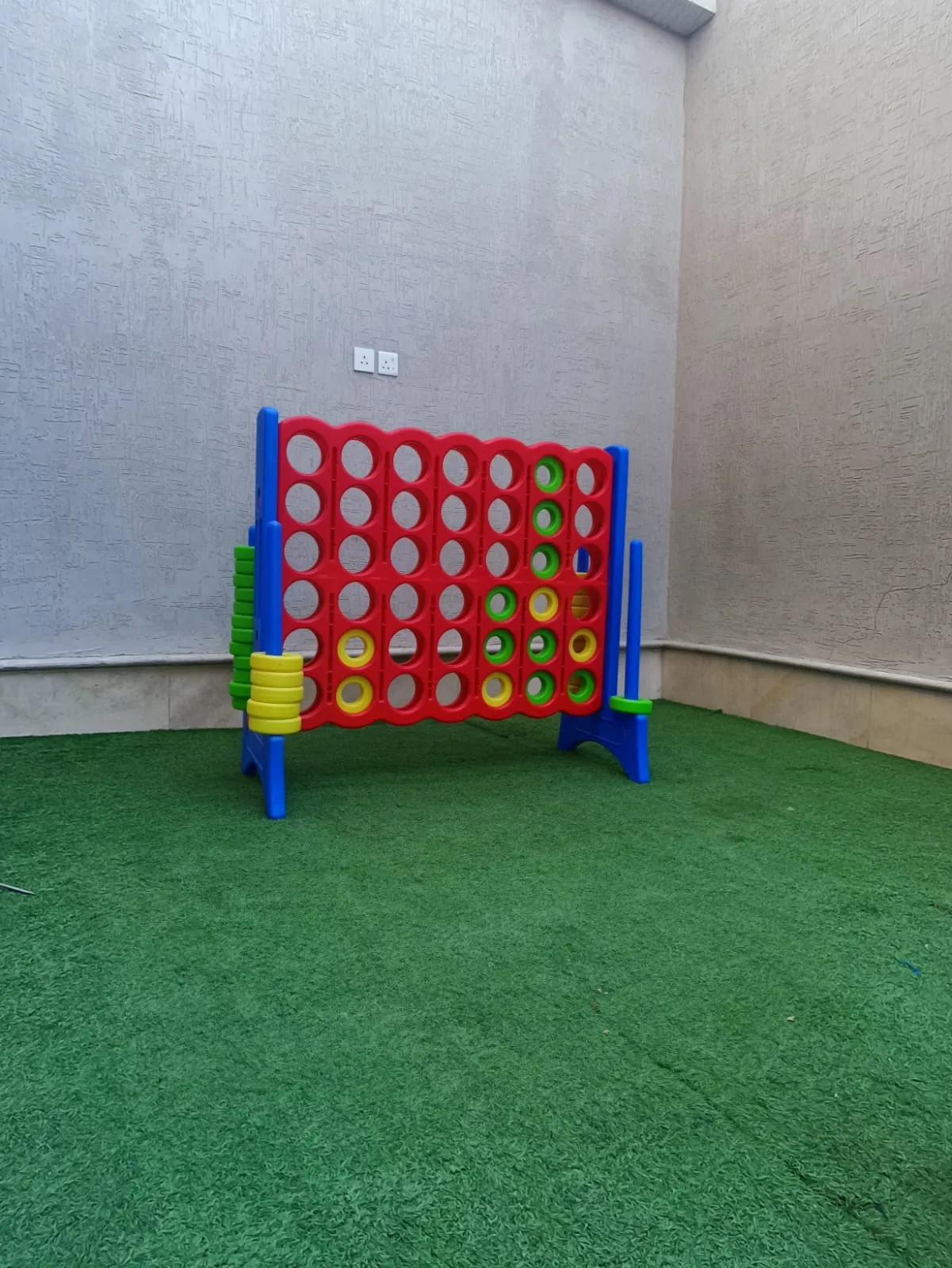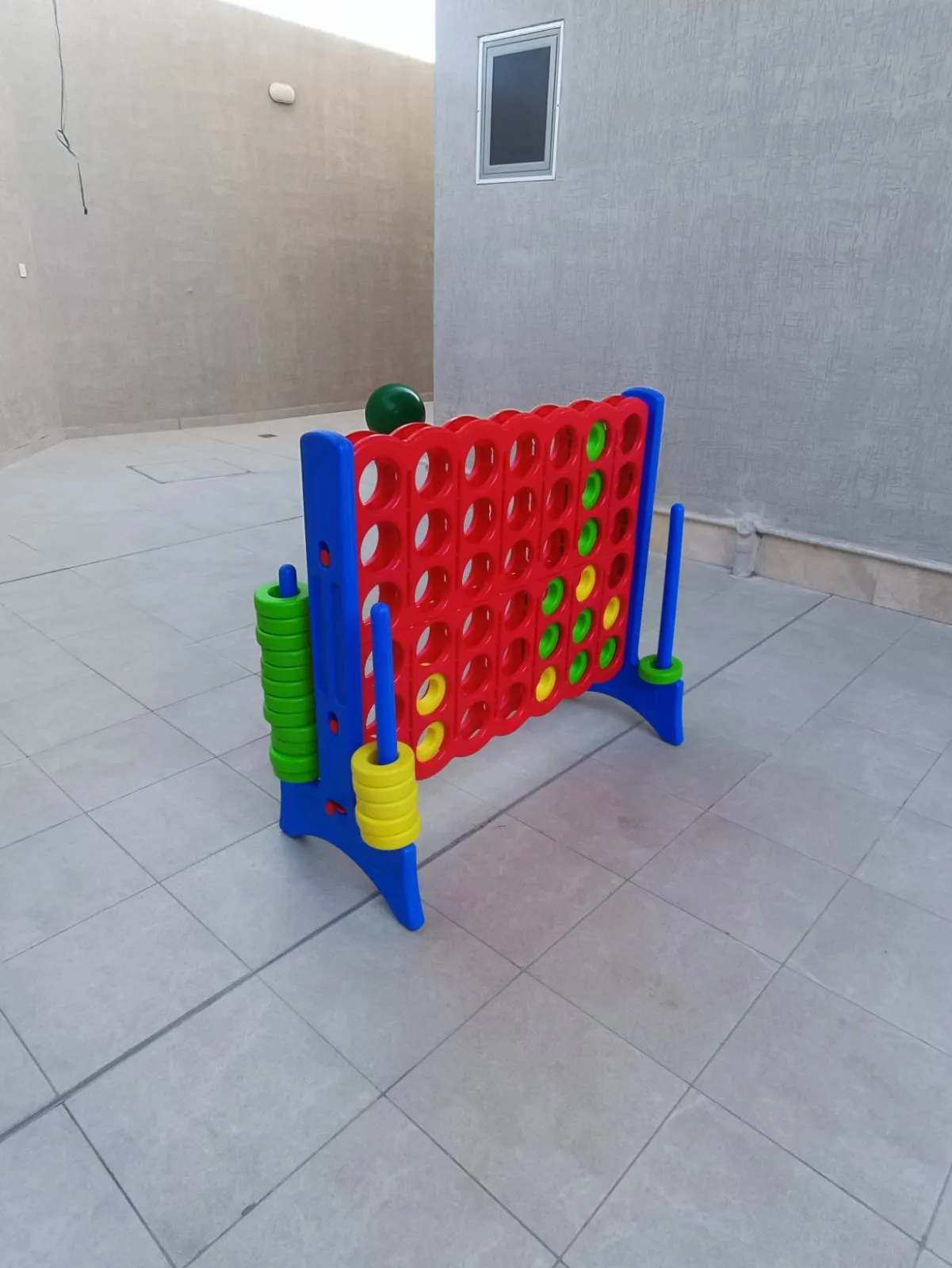 The Giant Connect Game is the perfect choice to bring fun and challenge to various events and occasions. With its large dimensions (length 50 cm, width 120 cm, height 110 cm), it’s eye-catching and ideal for group play for both kids and adults. The game’s goal is to connect four pieces of the same color in a row — horizontally, vertically, or diagonally — before your opponent does. Its oversized design adds excitement and makes it perfect for outdoor spaces, school events, family gatherings, and fun days at parks or entertainment centers. Made from high-quality materials, it ensures durability and ease of use, while helping to develop strategic thinking, focus, and a healthy competitive spirit among players. Booking Terms The price applies to the items only. The customer must ensure that the site space is suitable for the size of the requested games. Games will not be installed on sand or uneven surfaces, and installation in upper floors is strictly prohibited. Supervision of children is the customer’s responsibility, and there must be adults supervising throughout the entire usage period A 220V power source must be available at the installation site. Moving the games after installation is prohibited except by the installation team. A refundable security deposit of 200 SAR per game is required, to be returned upon receiving the game in good condition. Installation and dismantling of games may take place from dawn until Maghrib prayer, and installation time may vary depending on the type of game and the location. Any additional fees imposed by event venues or rest houses are fully borne by the customer.