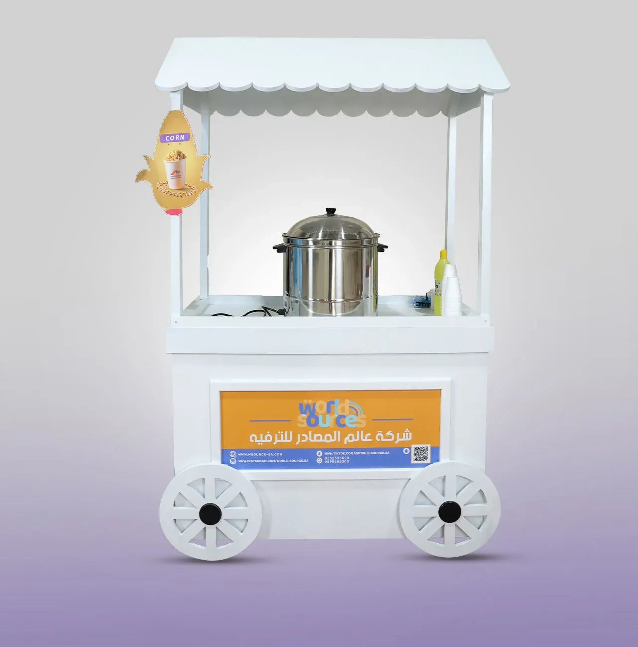 "The premium corn cart is perfect for serving fresh and delicious corn at events and festivals. Easy to operate and safe, it brings an atmosphere of fun and warmth while offering a tasty experience that everyone will love." Dimensions: L 80cm × W 120cm × H 225cm
