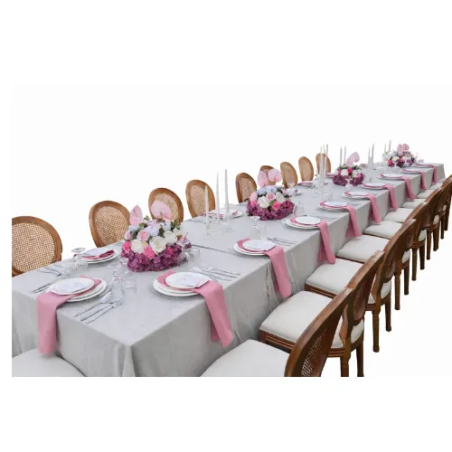 The price For Each person A luxury group dining table setup designed to deliver a complete and elegant dining experience for private events, gatherings, and upscale occasions. The table is arranged as a shared dining setup, while the price is calculated per person. This product includes more than just a chair; each person receives a complete setup including the dining table, chair, plates, cutlery, tableware, and an elegant floral arrangement, ensuring a ready-to-use and fully prepared experience. Free delivery within Riyadh and nearby cities.