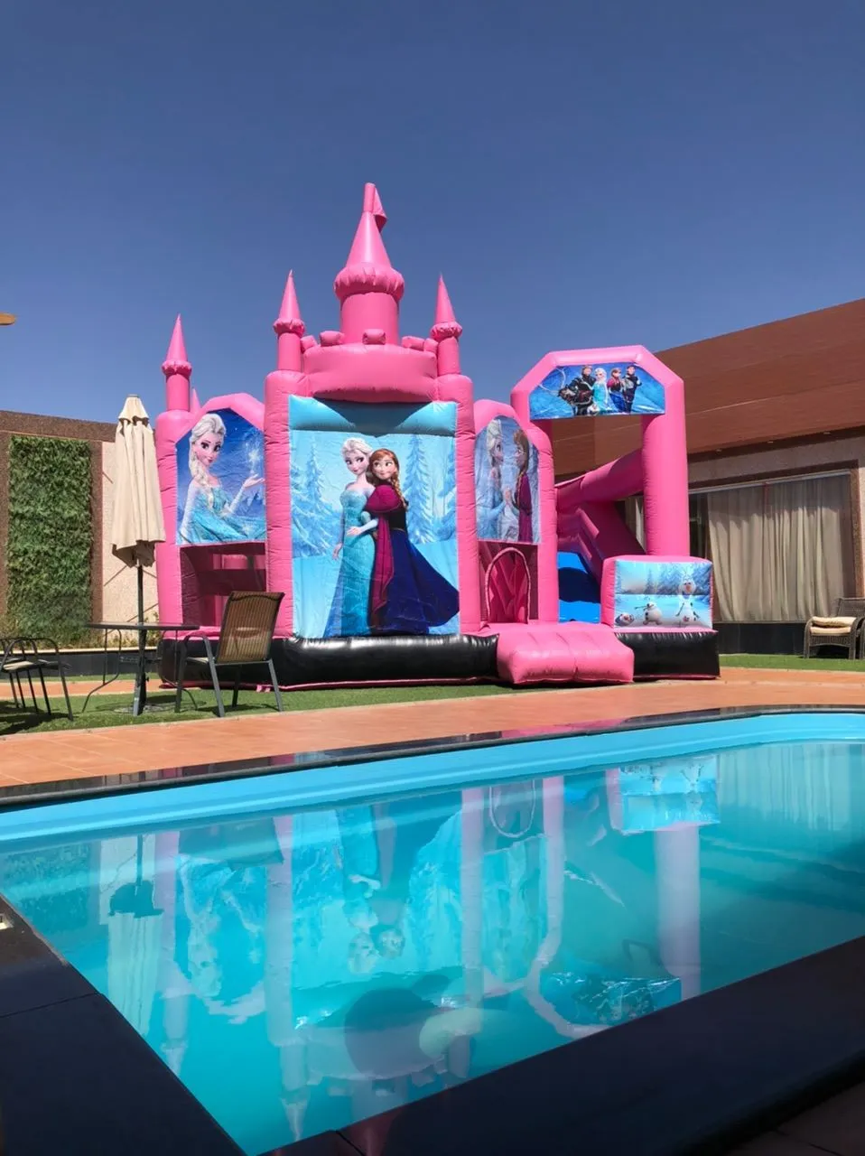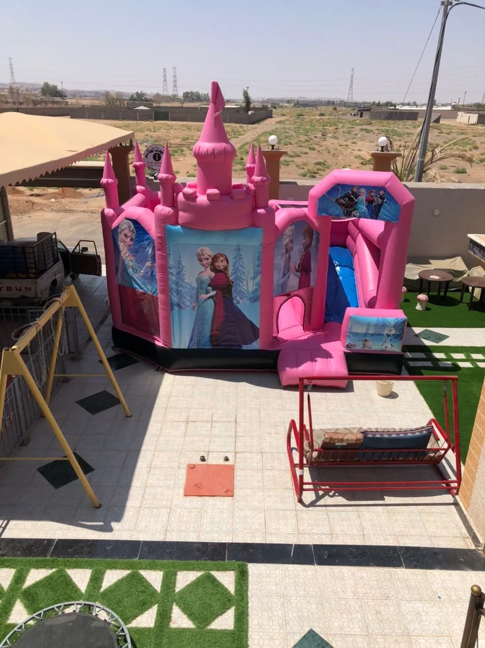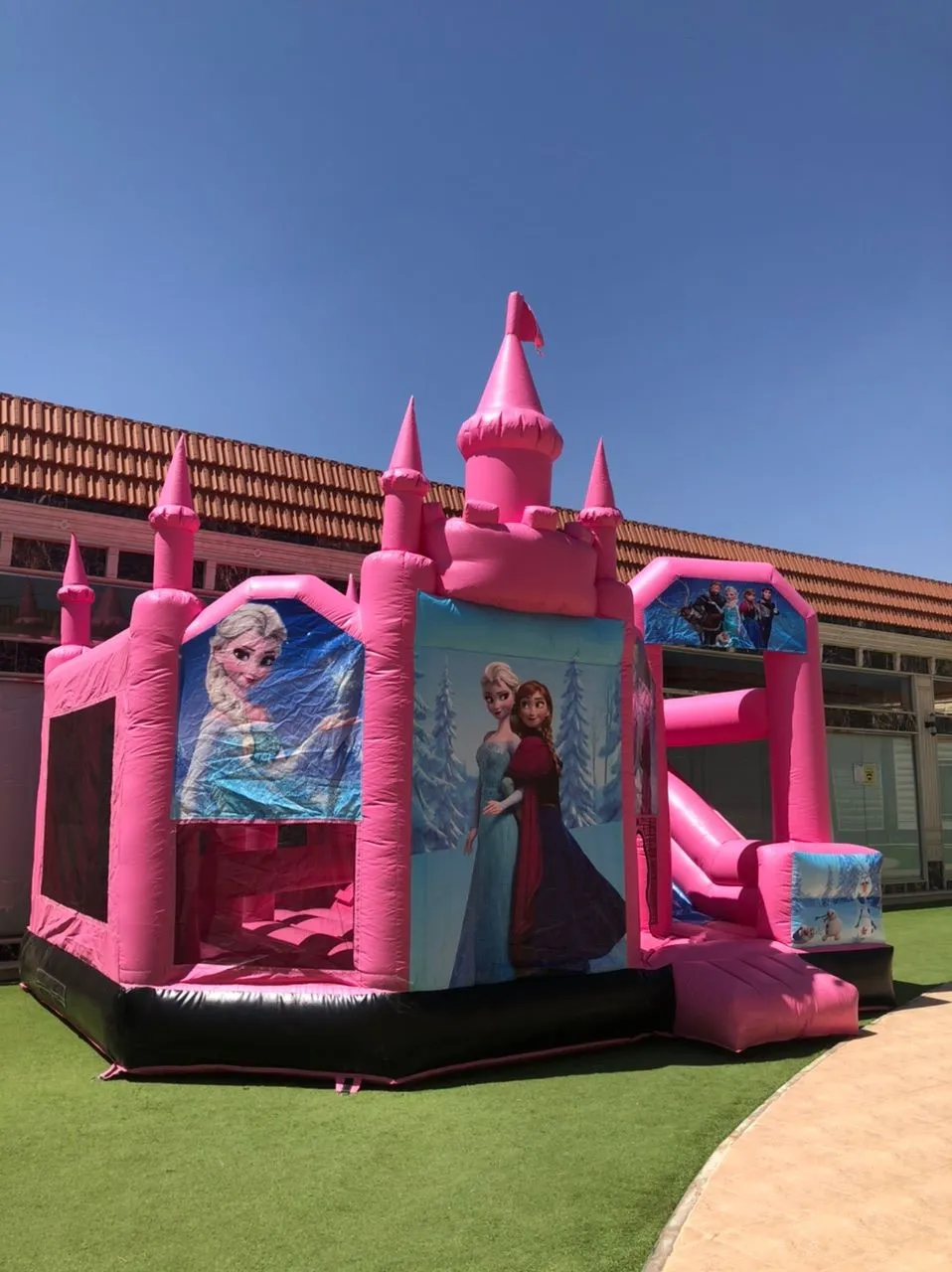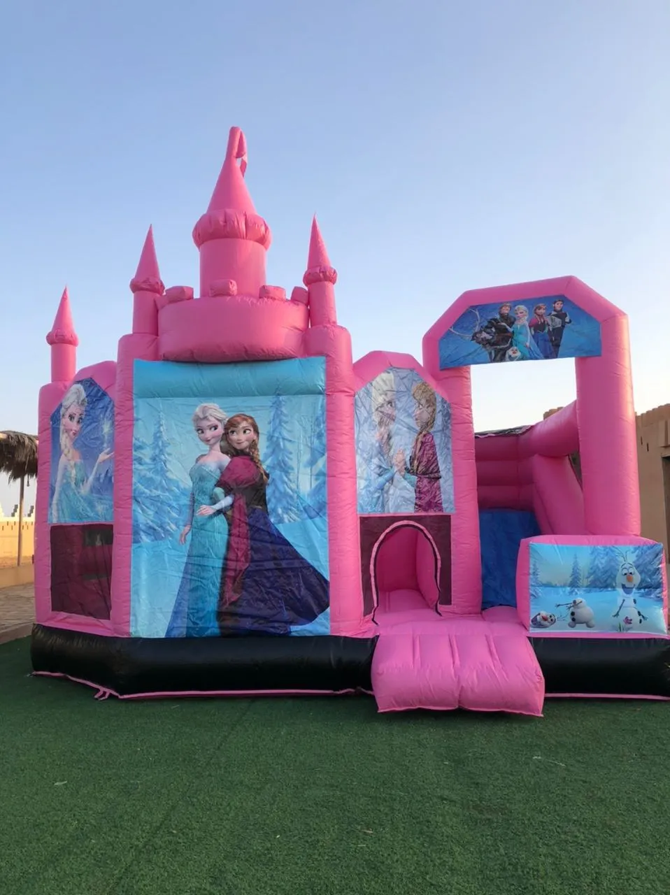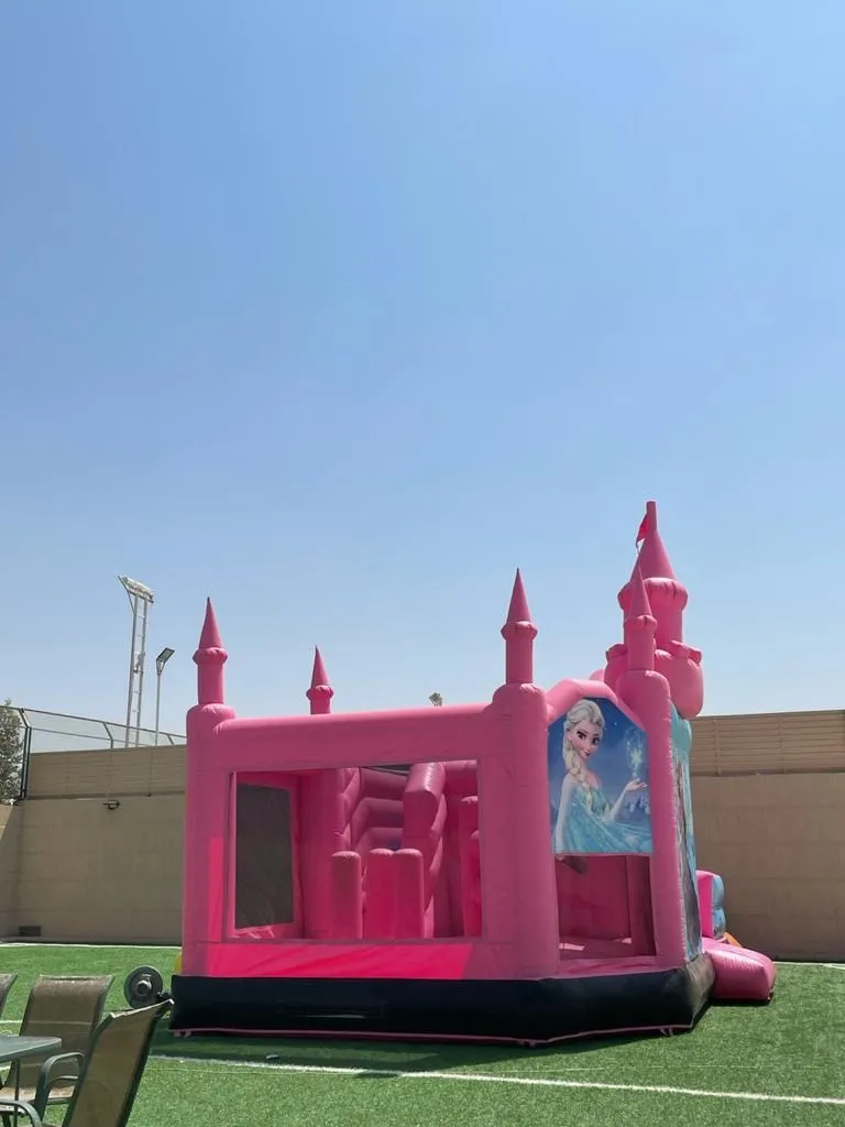 Turn any event into a magical fairytale with our Princess Bounce House, inspired by Disney princesses! This fully enclosed inflatable offers a safe and secure jumping experience for kids, with bright colors and charming princess illustrations. Dimensions: 7 meters (length) x 4 meters (width) x 5 meters (height) – ideal for schoolyards, backyards, and event spaces. Key Features: Fully enclosed for maximum safety during play. Made with durable, heavy-duty materials. Eye-catching Disney princess theme loved by kids. Quick setup and easy mobility. Perfect for girls of various ages. Ideal For: School parties and educational events. Birthday celebrations and family gatherings. Girls' themed events and kids' festivals. Outdoor parks, gardens, and recreation areas.