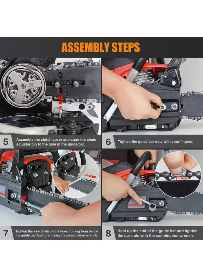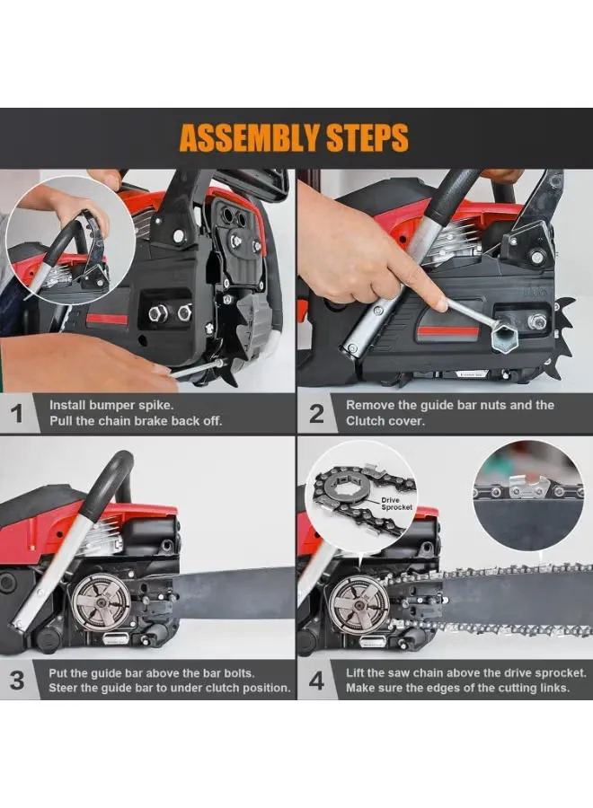 Gasoline chainsaw for cutting and sawing large and small trees and logs It features a safety lock and a sturdy handle to give you complete control while working. Made of high quality materials to ensure long life and better performance. Ability to handle a variety of sizes and types of wood with ease. This saw features low noise emission, making it an ideal choice for use in noise-sensitive areas. Helps you complete long tasks without having to stop frequently
