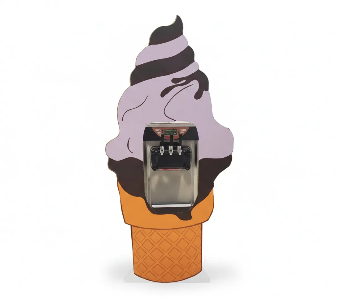 Enhance your event's hospitality area with our customized Ice Cream corner decor options. You can choose between the vibrant Classic Carnival Cart for a festive look or the sleek Cone-Shaped Frame that elegantly surrounds the ice cream machine. These decors are designed to be visual magnets, perfectly supporting the service of various flavors such as Vanilla, Chocolate, Mango, Pistachio, and Strawberry. Available Options: Carnival Cart decor or the modern Cone-frame model. Key Features: Colorful and attractive designs, clear flavor display interface, and easy mobility and setup.