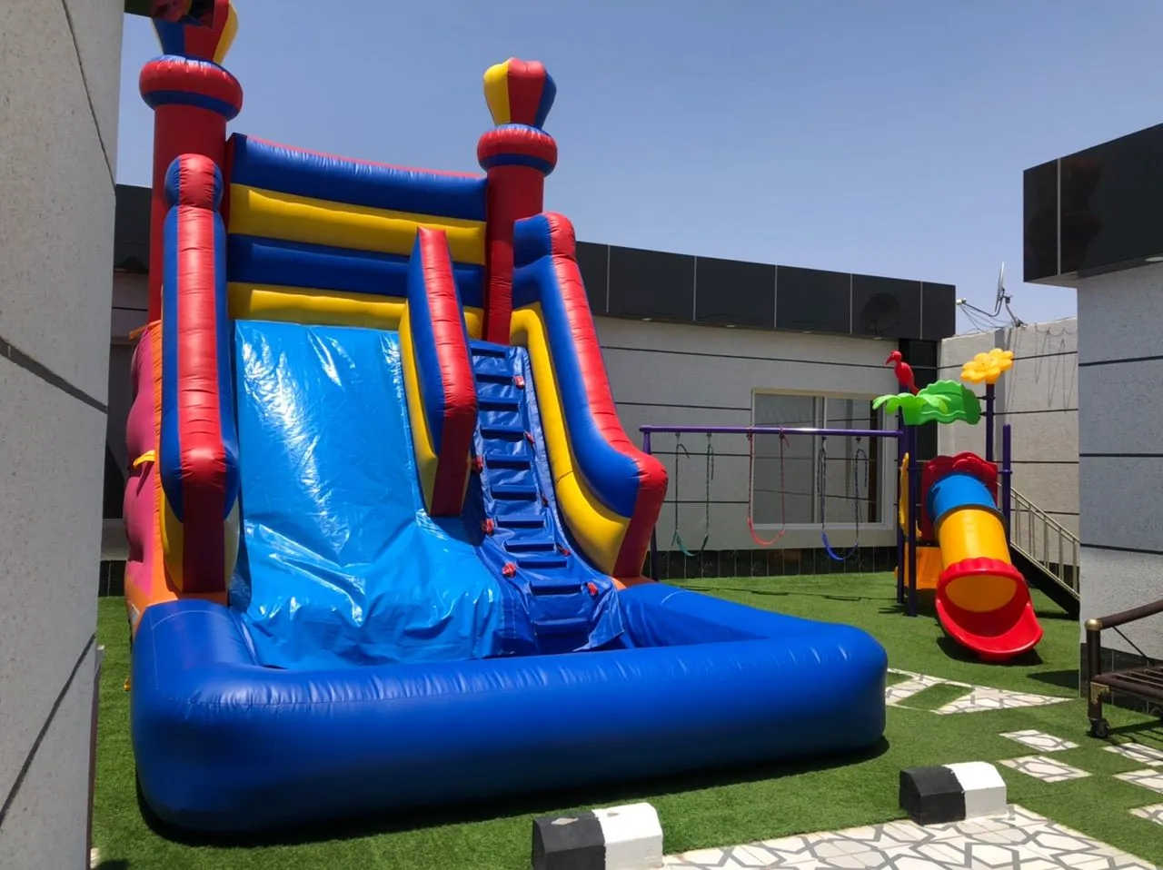 π Giant Inflatable Water Slide for Kids & Events β Perfect for Summer Fun! π Make your event unforgettable with this large inflatable water slide, designed especially for kids to enjoy safe, exciting, and refreshing outdoor fun! Whether it's a birthday party, school event, or family gathering, this water slide will be the highlight of the day. π Slide Dimensions: Length: 6 meters Width: 4 meters Height: 5 meters Safety Barriers: Surrounding the slide on all sides, with a minimum height of 1 meter for added protection. β Key Features: Made from durable, high-quality PVC material. Fully enclosed with safety barriers for maximum child protection. Quick and easy setup β fully inflated within minutes. Eye-catching design and vibrant colors that attract attention. Designed for active play and group interaction. Suitable for kids aged 4β12 years. π Ideal for Use At: Kids' birthday parties School events and fun days Backyard gatherings and BBQs Summer camps and play areas Corporate family events and public festivals Resorts, parks, and recreational centers