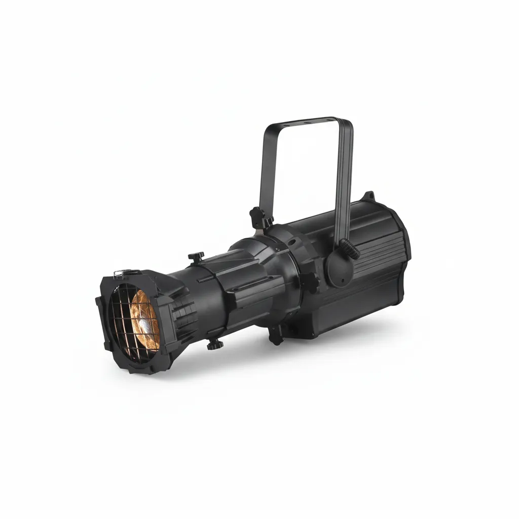 Enhance your event with high precision using the LED Profile Spotlight, an essential tool for focused stage lighting. This fixture is designed to project sharp-edged beams and allows for light shaping using internal shutters, making it perfect for illuminating speakers, decorative elements, or projecting logos (Gobo). Features: Energy-efficient, high-purity illumination, and precise control over beam shape and size. Usage: Indispensable for formal conferences, theatrical performances, and weddings to highlight key details.