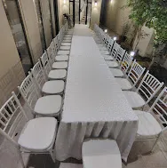 Welcome your guests in elegant French style with this luxurious hosting set. Featuring a sleek rectangular table paired with 8 transparent acrylic chairs in a royal French design, combining white, gold, and silver tones for a truly sophisticated look. Eye-catching French royal design High-quality materials (glass and acrylic) Comfortable chairs with refined details Ideal for indoor and outdoor gatherings Perfect for dinners, special events, and private occasions Rental Available daily or per event Delivery Available within Dammam and Khober