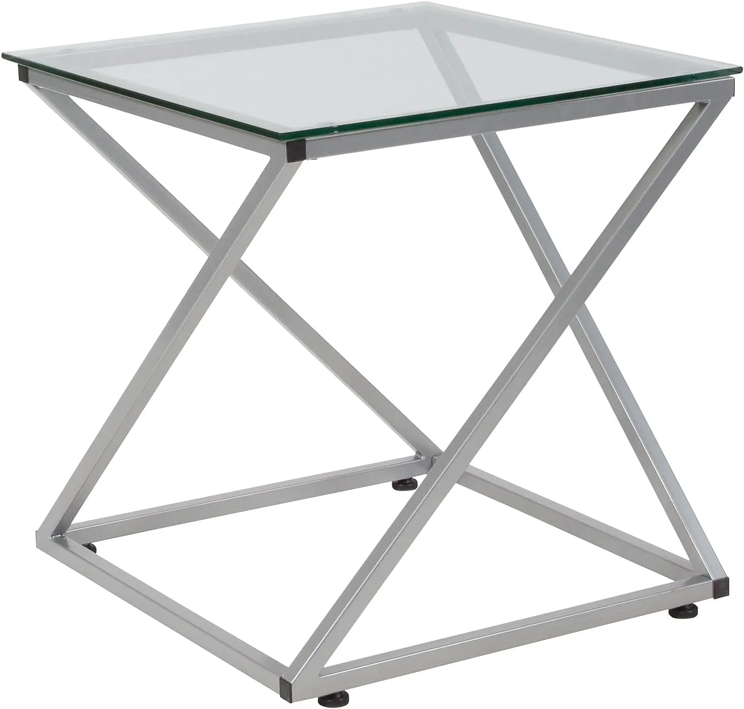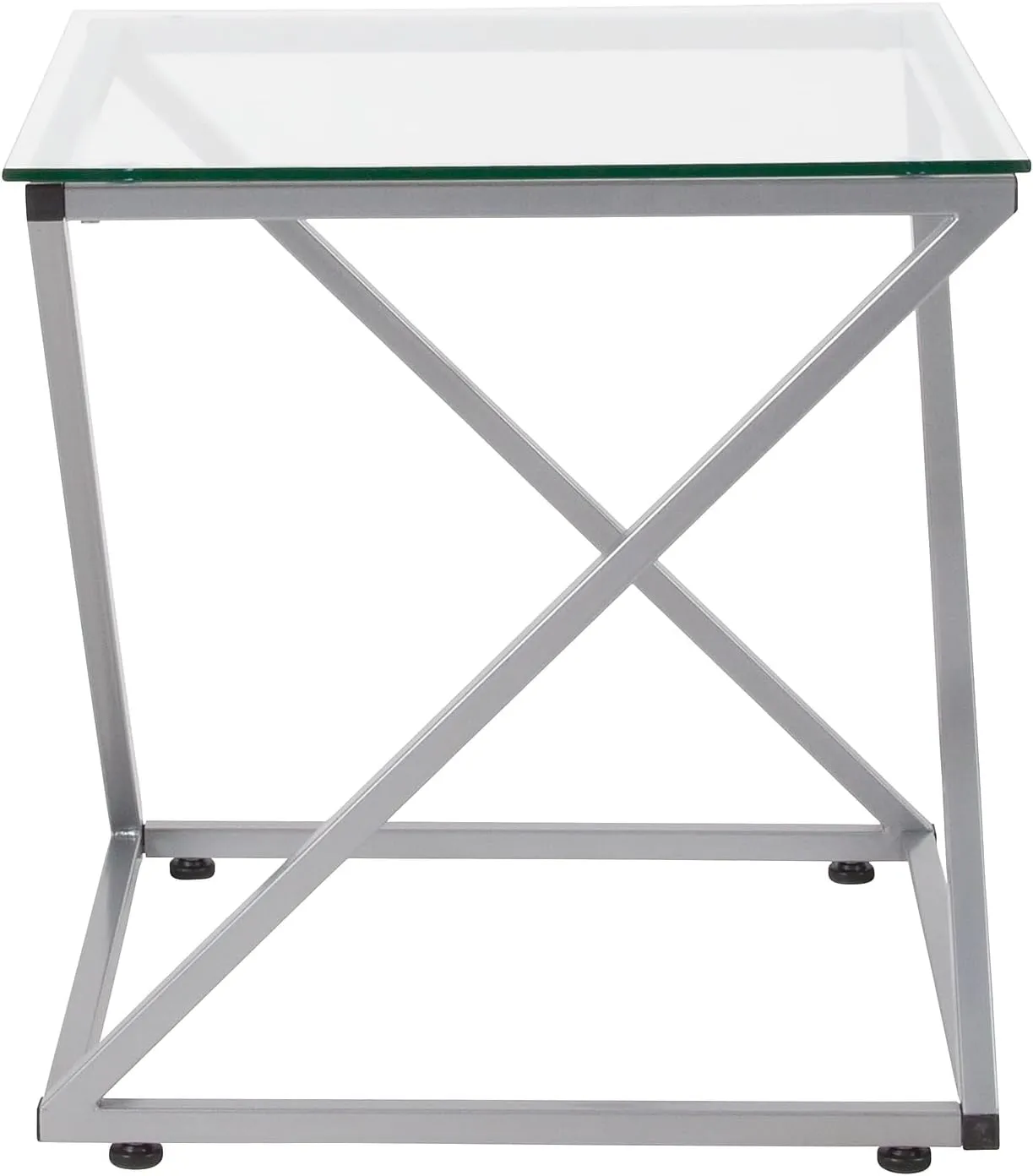 Elevate your space or upcoming event with this sleek, bright, and contemporary side table. It features a stunning geometric design that pairs a clear, square glass tabletop with a durable, cross-braced metal base in a crisp white finish. Its open and airy design, combined with the pristine white frame, creates an illusion of space, making it a seamless and refreshing addition to light-toned decors, weddings, and modern events." 💡 Perfect For Renting At: Weddings and bridal events (thanks to its pristine white finish). Bright VIP lounges and premium reception areas. Corporate events and conferences for stylish accent seating. Exhibition booths to add a touch of fresh, professional elegance