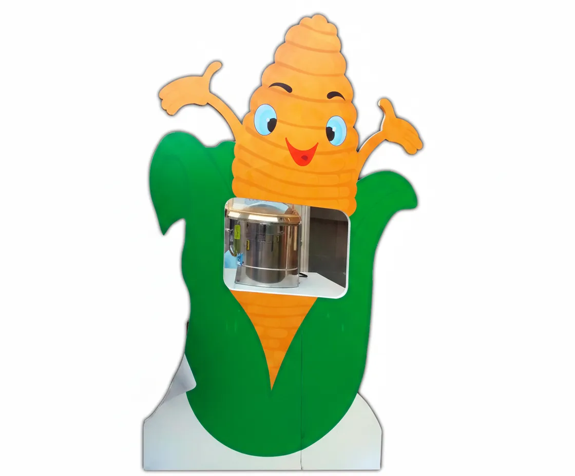 Serve your guests a healthy and delicious snack with our professional corn steamer. The machine features a circular stainless steel design with a transparent glass lid, allowing a clear view of the golden corn kernels as they steam to maintain their fresh taste and nutritional value. It is an ideal choice for adding a unique variety to your hospitality corner at winter events and festivals. Capacity: Sufficient to serve 50 people. Key Features: Even heat distribution, durable easy-to-clean structure, and a compact design suitable for various display spaces.