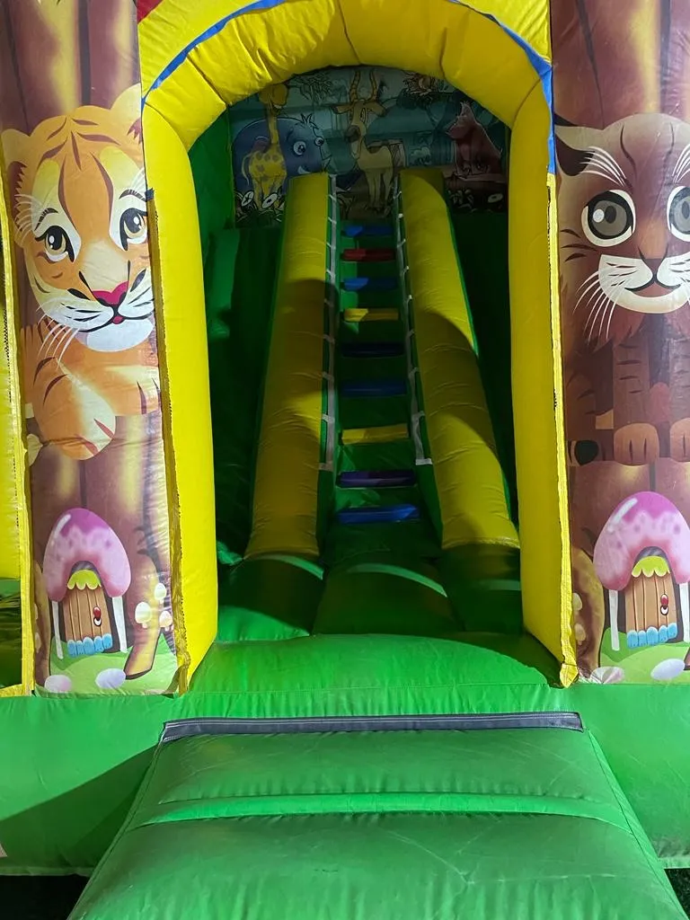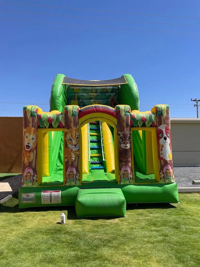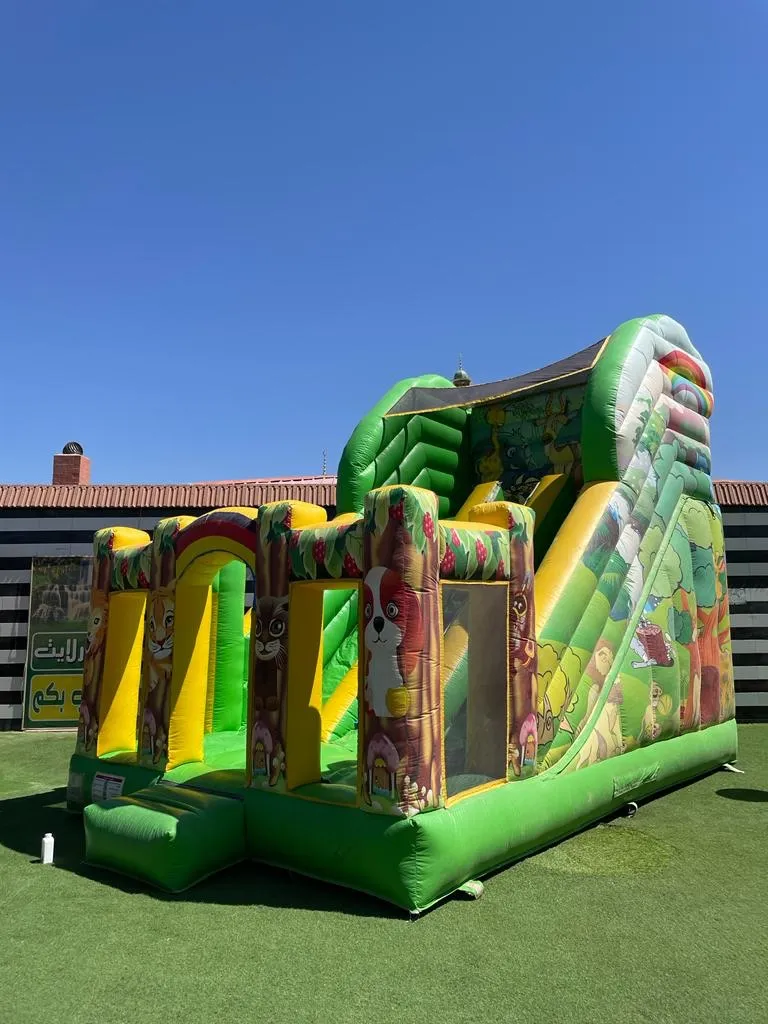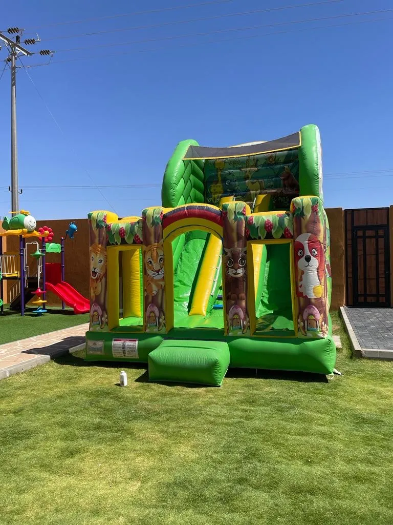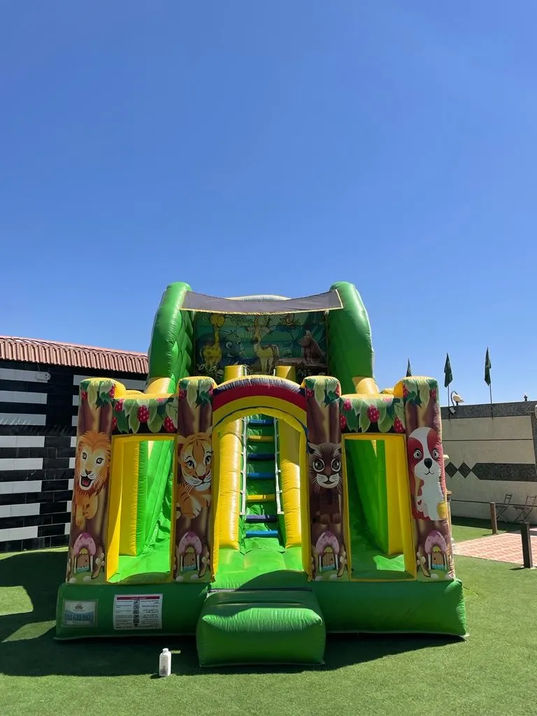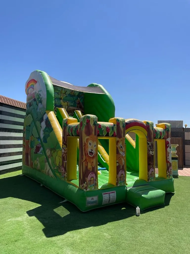 🦁 Simba Inflatable Slide – The Lion King Adventure A Safe and Colorful Experience for Kids at Any Event Bring the magic of a beloved character to life with the Simba inflatable slide, inspired by The Lion King. With dimensions of 7m (length), 4m (width), and 6m (height), and 1-meter-high safety barriers on all sides, this slide is designed to provide fun and security for children during any event. ✅ Features: Eye-catching design featuring Simba from The Lion King Full safety barriers for maximum protection Durable, waterproof, and anti-slip materials Suitable size for medium to large gatherings Easy setup and takedown – ideal for rentals and mobile use 📍 Ideal For: Children’s parties and birthday events Festivals and outdoor celebrations Schools and early learning centers Public parks and recreational areas Family events and carnivals