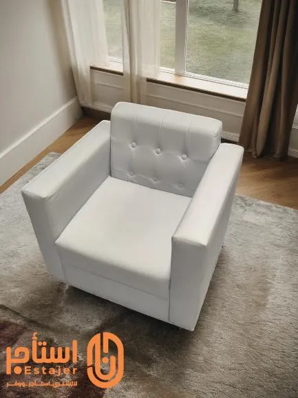 Product Name: Single White Fabric Sofa with Button-Up Back Specifications: Color: White Material: Luxurious Fabric Design: White Fabric Armchair with Button-Up Back Features: Elegant and luxurious design made from high-quality fabric. Decorated with buttons on the back, adding a touch of classic elegance. Provides excellent comfort thanks to its thoughtful and durable design. Ideal for use at parties, events, and receptions. Reservation Method: Select the desired number of chairs. Select the rental period using the available calendar. Continue to pay via the provided link. After completing your payment, we will contact you within 3-5 hours to confirm your details and delivery.