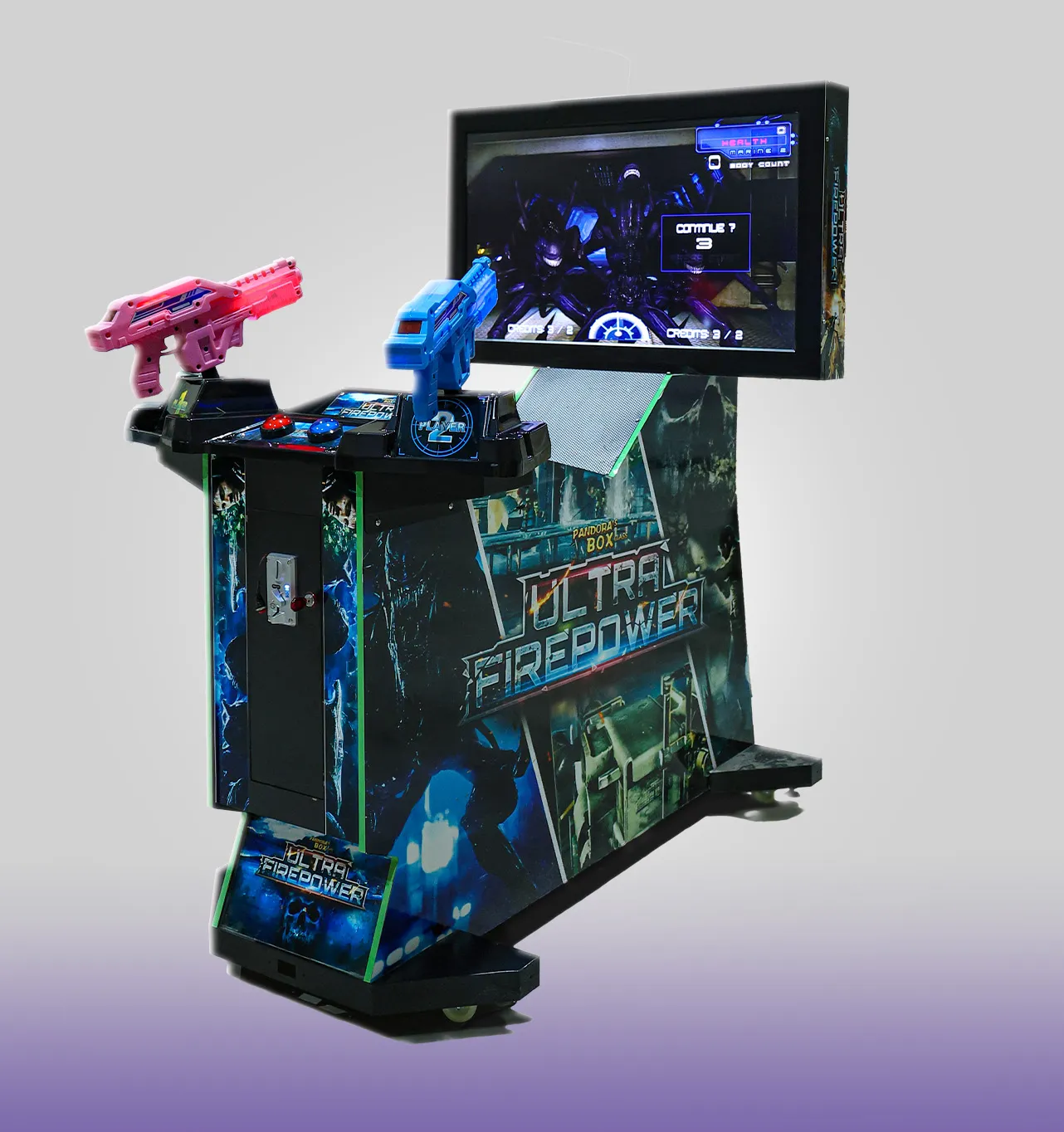 Get ready for the ultimate thrill! UltraFire is an action-packed, interactive arcade game designed for fans of fast-paced shooting games. It delivers an immersive experience with stunning sound and visual effects, and high-quality graphics that elevate the entertainment at any arcade or event. Appealing to players of all ages, it's an ideal choice for malls, theme parks, lounges, and pop-up entertainment venues. Ultrafire Gaming Console - The Professional Arcade Experience in Your Home Get ready for a whole new level of excitement with the Ultrafire console. This isn't just a video game; it's a complete entertainment center that combines arcade classics with cutting-edge visual technology to deliver an immersive and realistic shooting experience. - Dual Sniper System: The console comes equipped with two pink and blue pistols, making it perfect for duels with friends or family. - High-Definition (HD) Display: Featuring a large flat screen that delivers sharp graphics and vibrant colors, you'll feel right in the middle of the action. - Huge Game Library: The console gives you access to a wide range of classic and modern shooting and action games. - Classic Arcade Design: Featuring a durable chassis and a modern design adorned with attractive graphics and LED lighting, it adds a fun atmosphere to your arcade or living room. - Easy to Use: A simple interface lets you select games and start playing immediately, with the option to add coins or set it to free play. It's the perfect choice for cafes, entertainment centers, or even for gaming enthusiasts who want to build their own home arcade. It combines kinetic fun with endless visual entertainment. Dimensions: L 160cm x W 117cm x H 220cm Free delivery within Riyadh