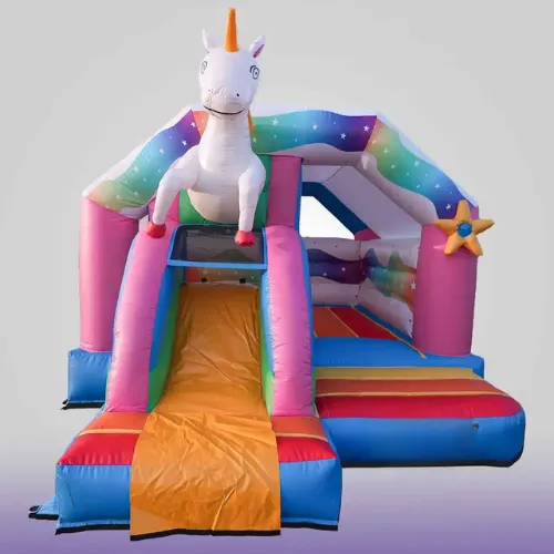 "The Unicorn Jumper & Slide combines jumping and sliding in a cheerful, fantasy-inspired design that adds positive energy to any place. Its attractive colors and charming look make it a standout feature at parties and events, offering an entertaining experience full of movement and fun, perfect for all kinds of celebrations." Dimensions: L 5m × W 4m × H 4m