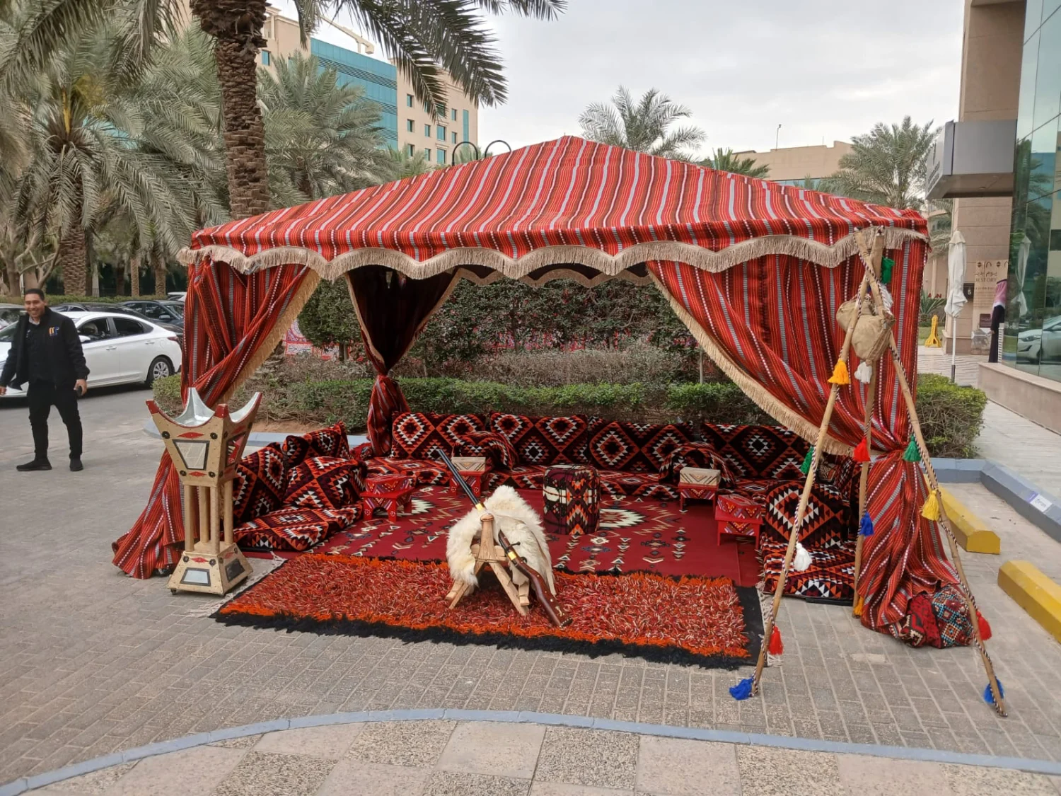 Traditional Bedouin Tent – 4x6 m | Two-Tone Black & White with Carpet & Lighting