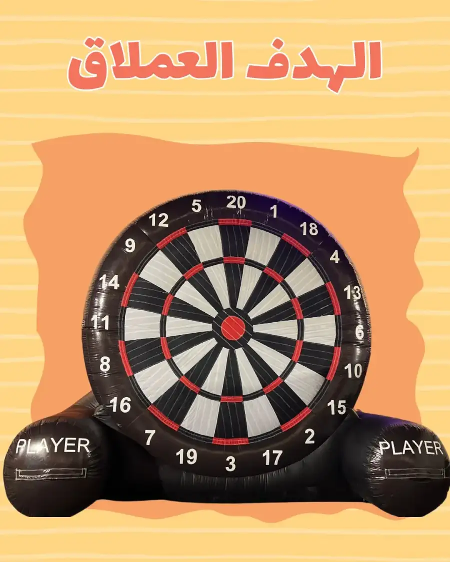 لعبة مبتكرة على شكل دارت عملاقة تعمل بالكور الهوائية بدلاً من السهام، مما يجعلها آمنة تمامًا ومناسبة لجميع الأعمار. تضفي أجواء من التحدي والإثارة سواء في المسابقات الفردية أو الجماعية، وتعتبر إضافة رائعة للمهرجانات، الفعاليات الرياضية، والمعارض الترفيهية. ⚙️ المواصفات الفنية الحجم ارتفاع تقريبي: 3 – 4 أمتار المادة PVC عالي الجودة مقاوم للتمزق والماء طريقة التثبيت يُنفخ بواسطة منفاخ كهربائي طريقة اللعب التصويب بكُرات لاصقة (Velcro Balls) الفئة العمرية مناسبة لجميع الأعمار الاستخدام داخلي أو خارجي عدد اللاعبين 1 – 2 في كل جولة توصيل و تركيب مجاني ضمن مدينة جدة - ابحر - مدينة الملك عبدالله مكه - ثول - خليص