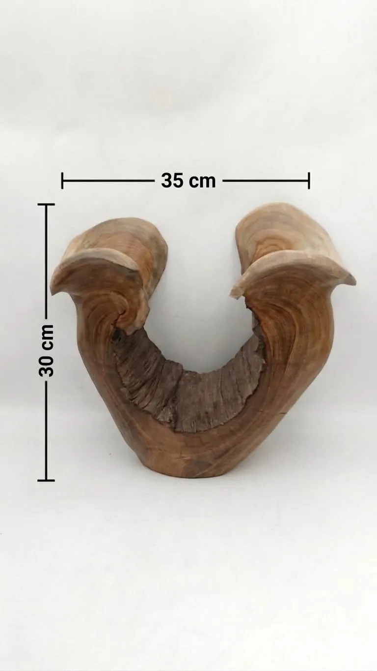 فازة خشبية منحوتة من جذوع الأشجار - تصميم تراثي بانحناء انسيابي وفجوات طبيعية