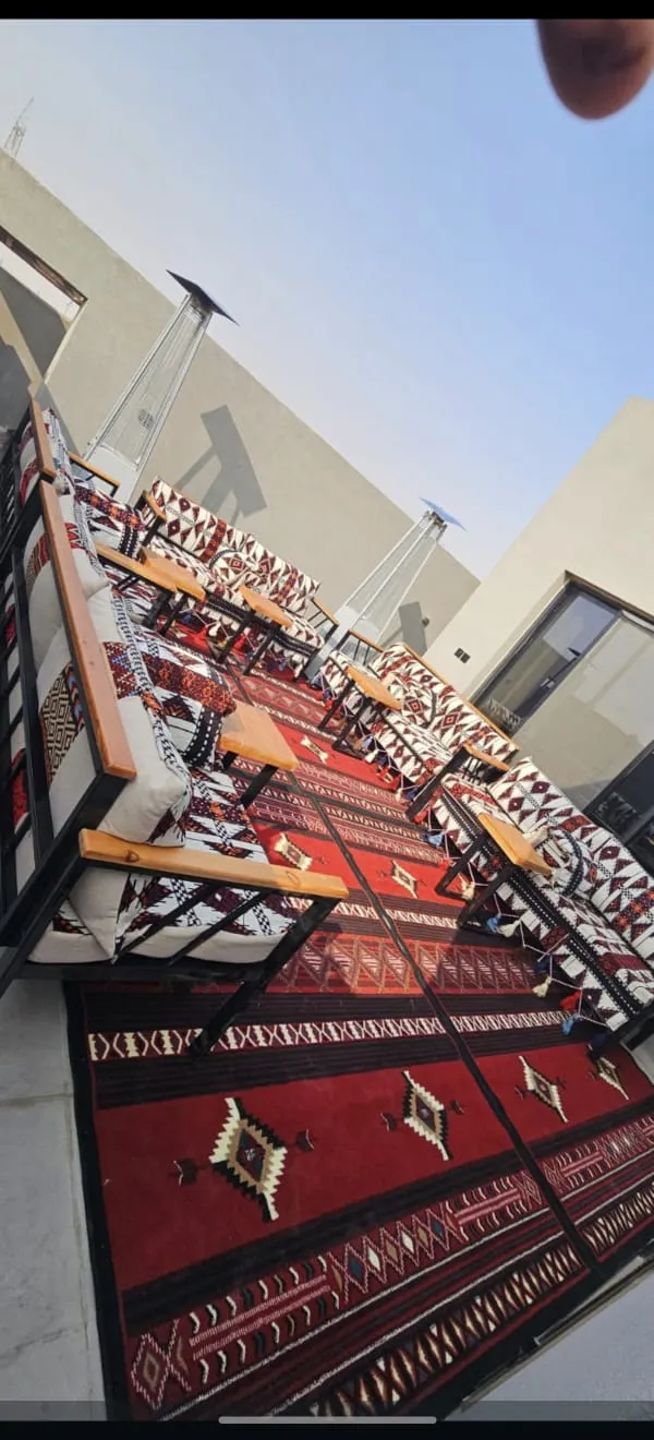 جلسة عربية خارجية للضيافة بتصميم تراثي أنيق تضيف طابعًا دافئًا وأصالة عربية مميزة لأي مناسبة أو فعالية. تم تجهيز الجلسة بأسلوب عملي ومريح يراعي راحة الضيوف، مع تنسيق أنيق يناسب الأجواء الخارجية والمناسبات الخاصة. تعد خيارًا مثاليًا لاستقبال الضيوف وتوفير تجربة ضيافة مميزة تجمع بين الفخامة والراحة، وتستوعب الجلسة حتى 15 شخصًا بكل راحة. التوصيل داخل مدينة الرياض مجاني.