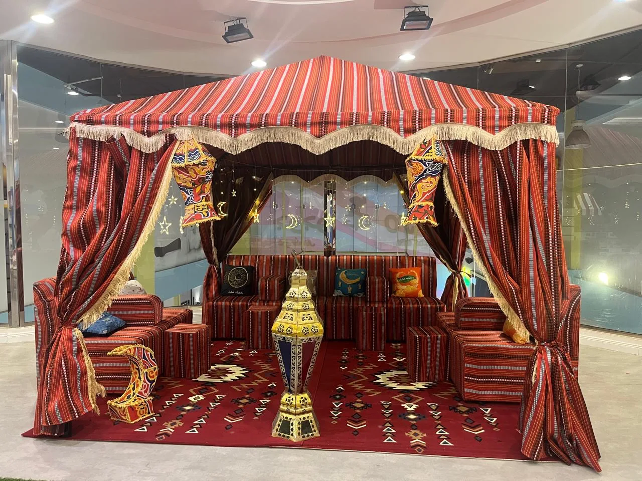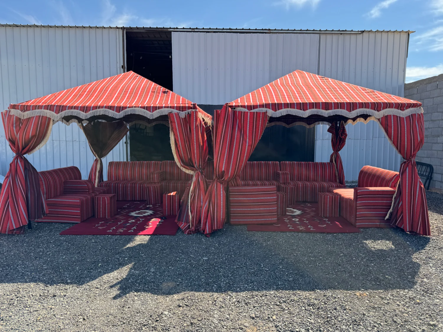 خيمه سدو احمر ذات طابع شعبي للحفلات والمناسبات ويمكن أضافه الجلسات الكنب والارضيه لها