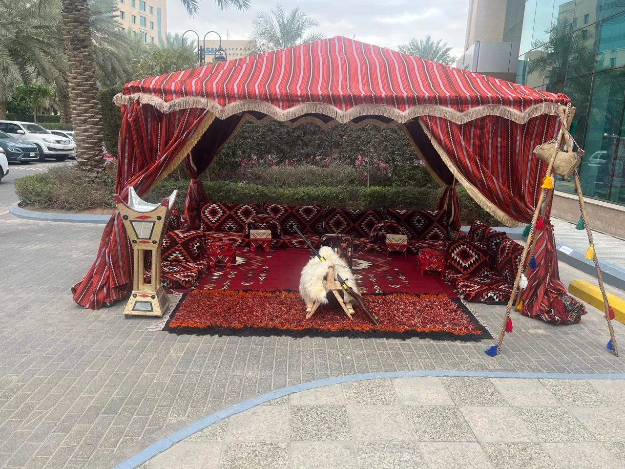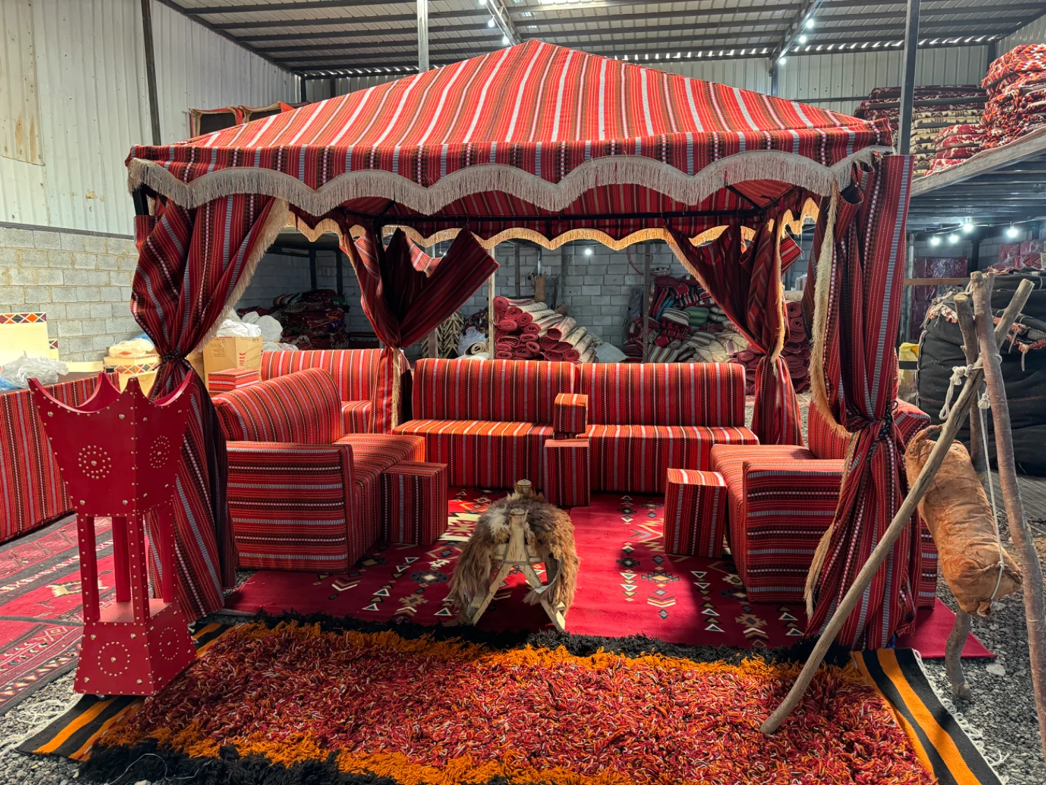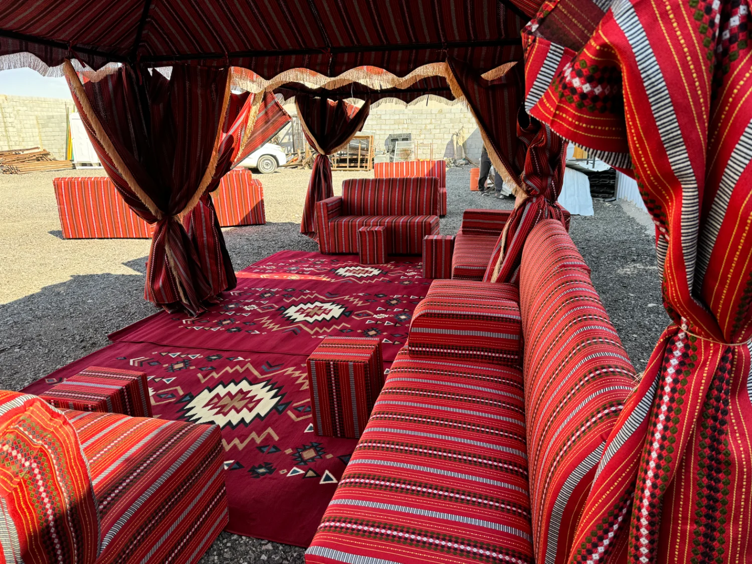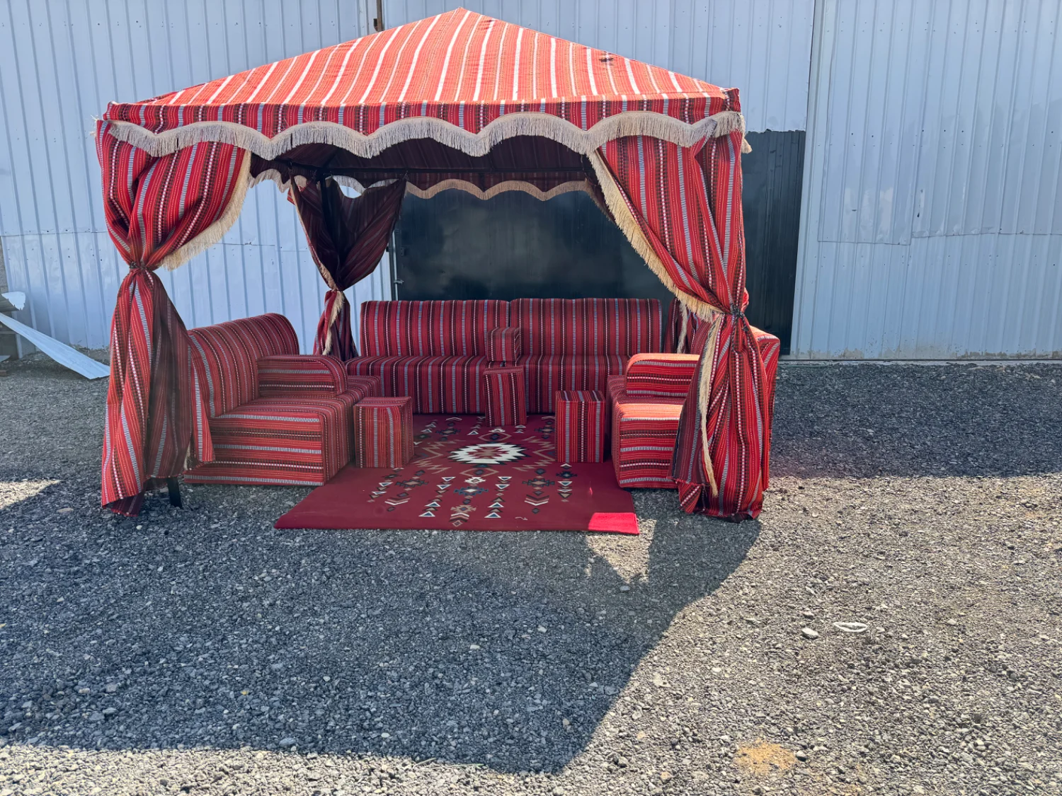 خيمه سدو احمر ذات طابع شعبي للحفلات والمناسبات ويمكن أضافه الجلسات الكنب والارضيه لها