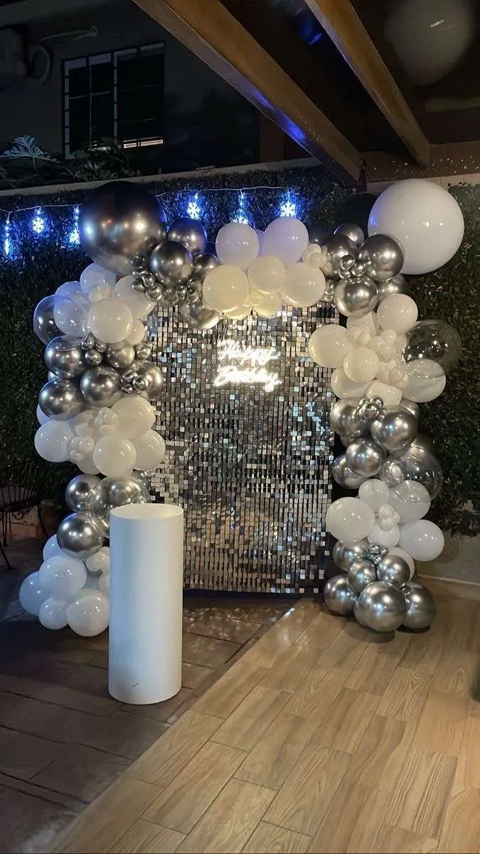 أضف لمسة من الفخامة والتميز إلى مناسبتك مع ركن الاستقبال العصري هذا، المثالي لأعياد الميلاد، حفلات التخرج، أو أي احتفال خاص. يتميز بتصميم أنيق يجمع بين اللمسات العصرية والجاذبية الاحتفالية، مع إضاءة جذابة وخلفية لامعة تضيف لمسة سحرية. محتويات الركن: خلفية لامعة: تتميز بتصميم عصري وجذاب، وتضفي جوًا احتفاليًا على الصور. بالونات أنيقة: تشمل تشكيلة من البالونات باللونين الأبيض والفضي والشفاف، لتناسب مختلف أنواع المناسبات. قاعدة عرض دائرية: مثالية لوضع كيكة المناسبة أو أي ديكور آخر. متاح للإيجار: الركن متاح للإيجار اليومي أو لفترات أطول حسب طلبك، وهو الخيار الأمثل لمنح مناسبتك طابعًا فريدًا لا يُنسى. خدمة التوصيل: نوفر خدمة التوصيل والتركيب مجانًا داخل الدمام والخبر، لضمان راحتك وسهولة الاستخدام.