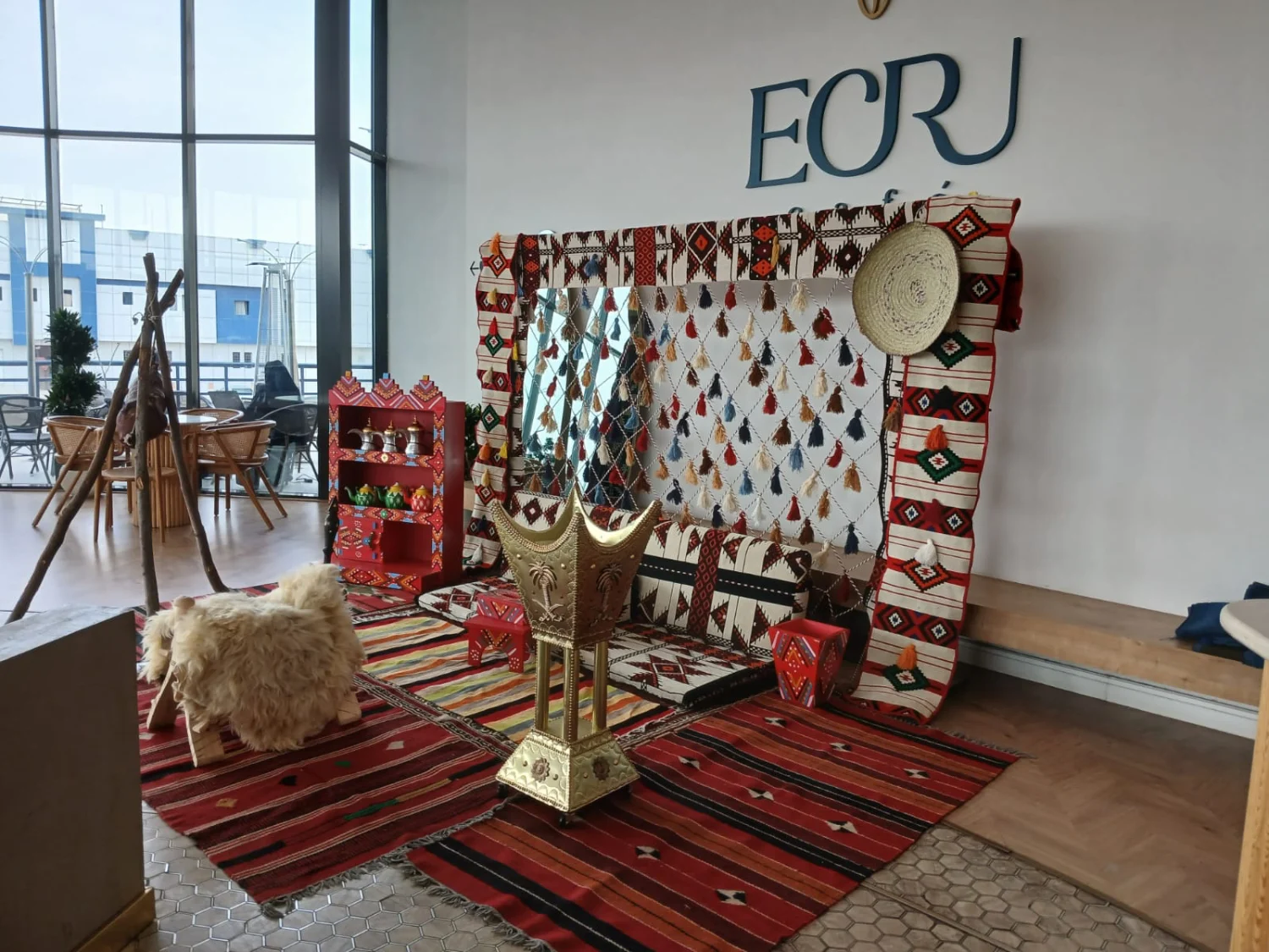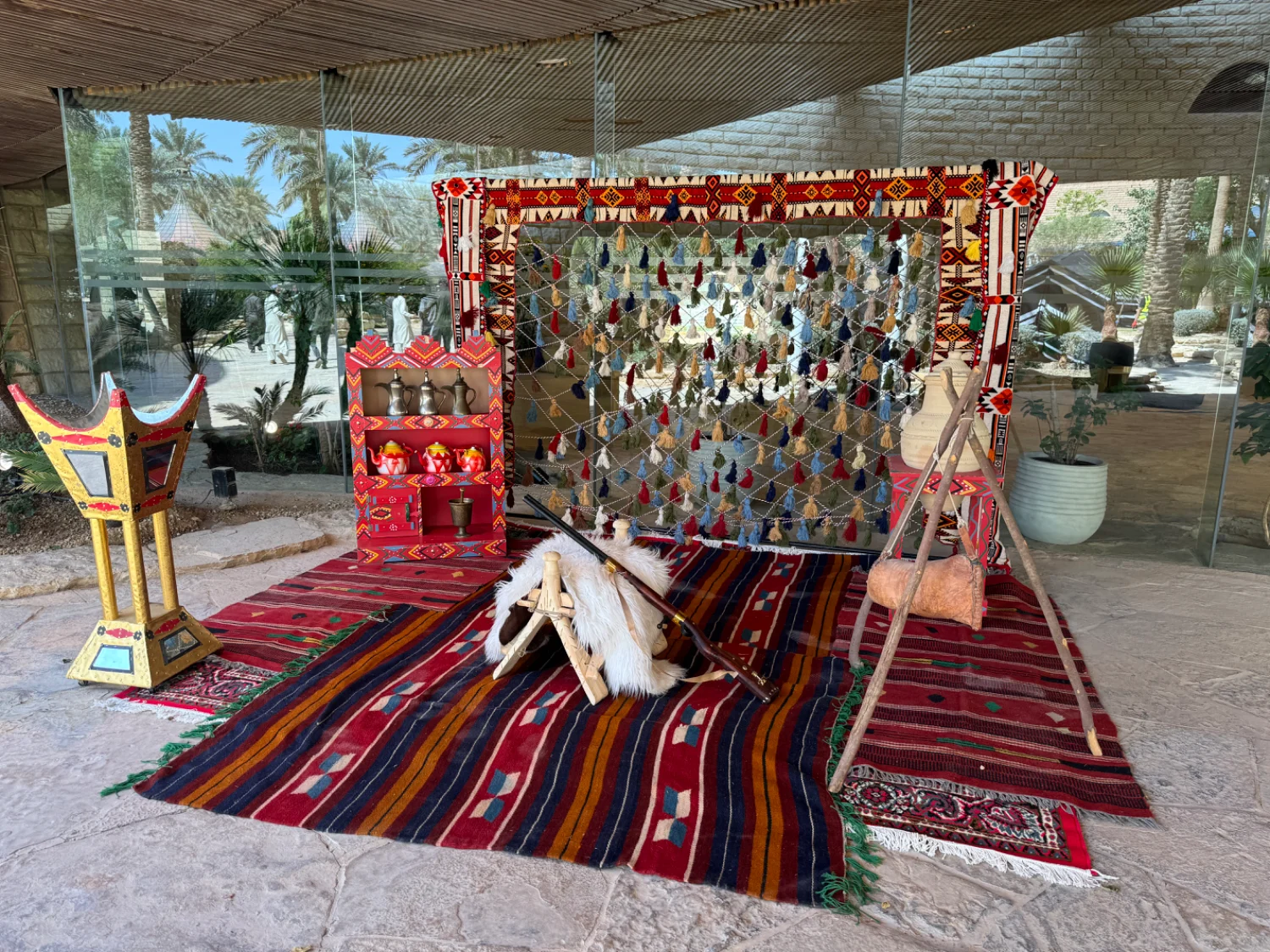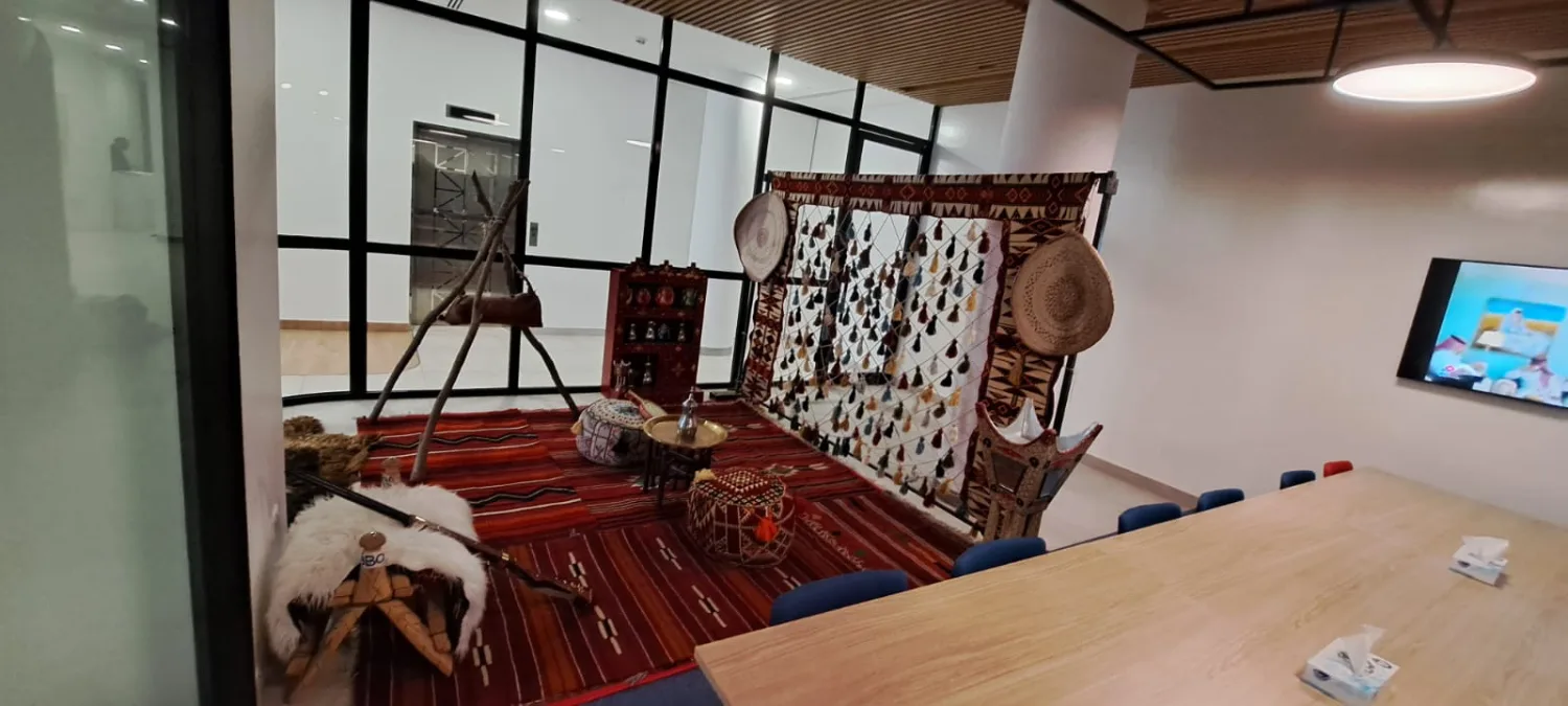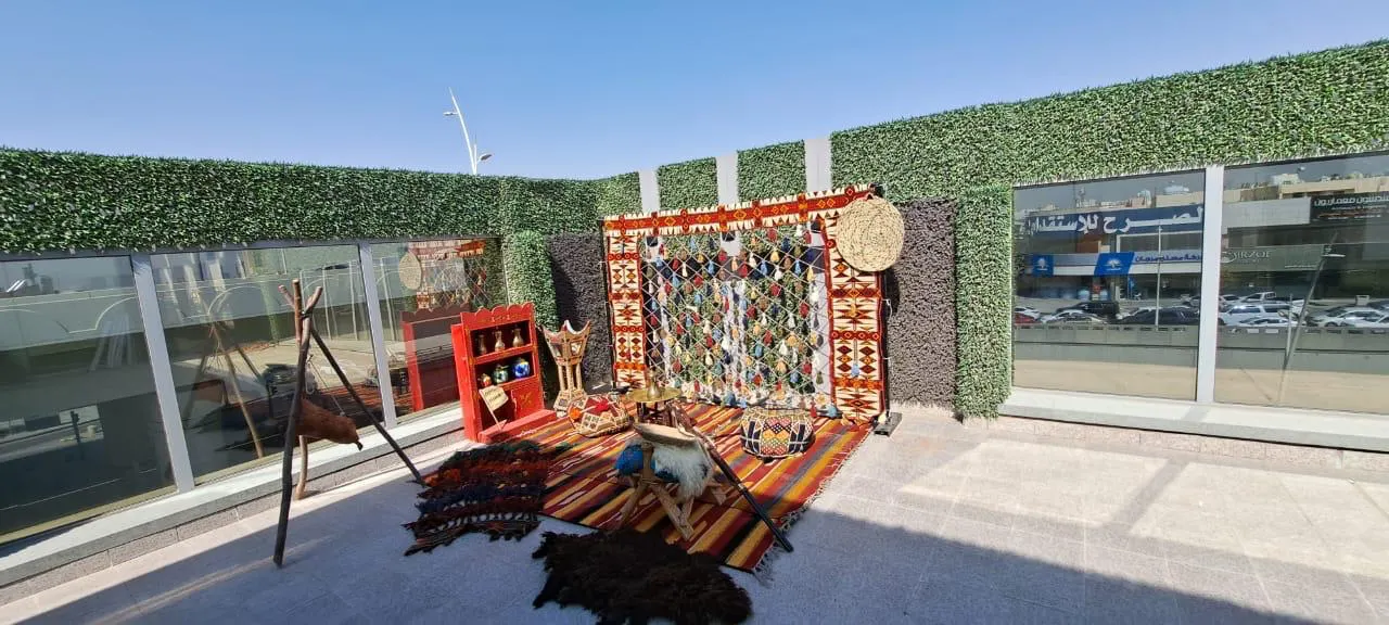 ركن شعبي تراثي مع خلفيه سدو مقاس ٣ متر ارتفاع ٢ متر مع الفرش وجلسه ارضيه او مرتفعه وتشكيله متنوعه من الديكورات التراثيه