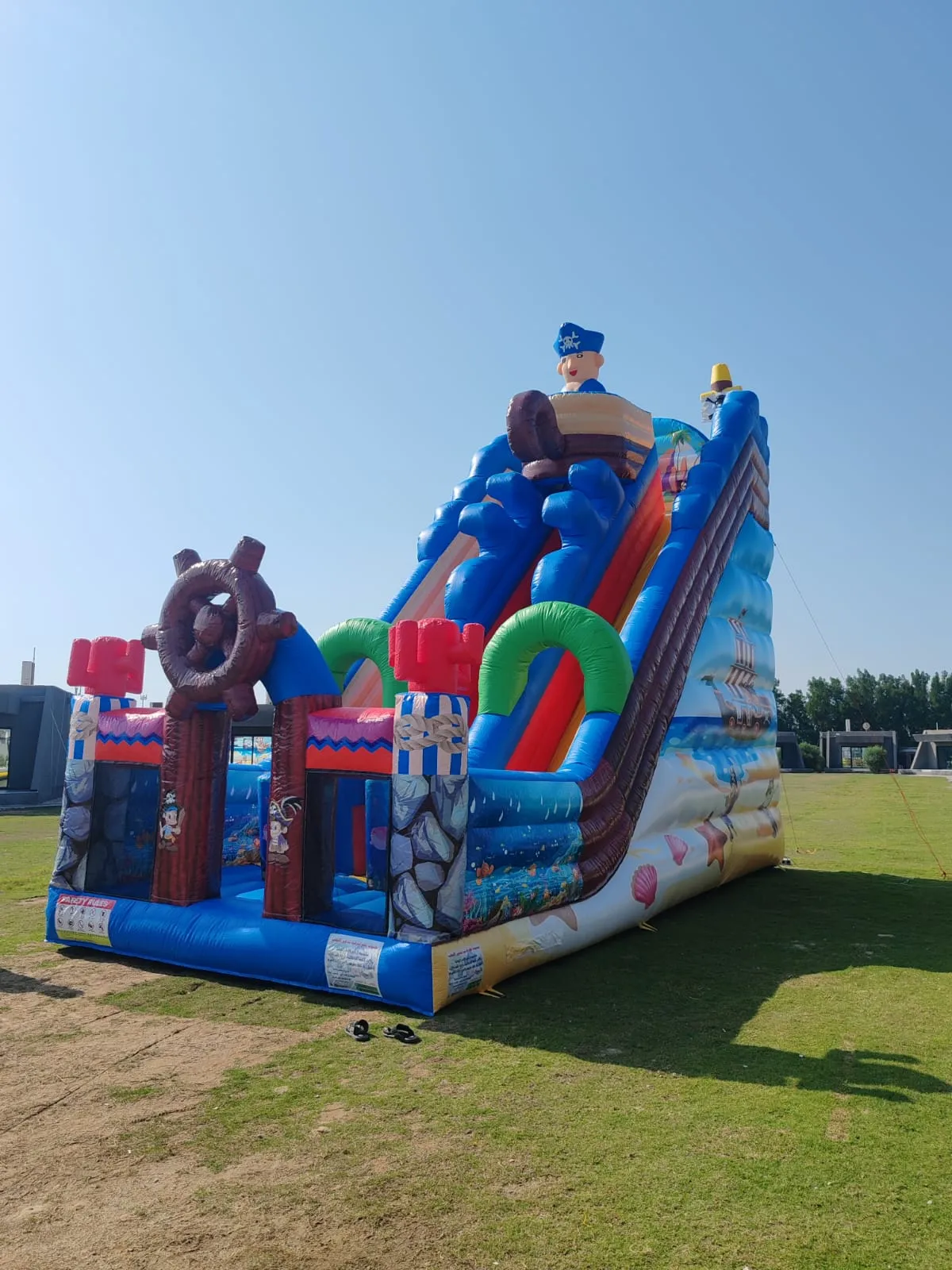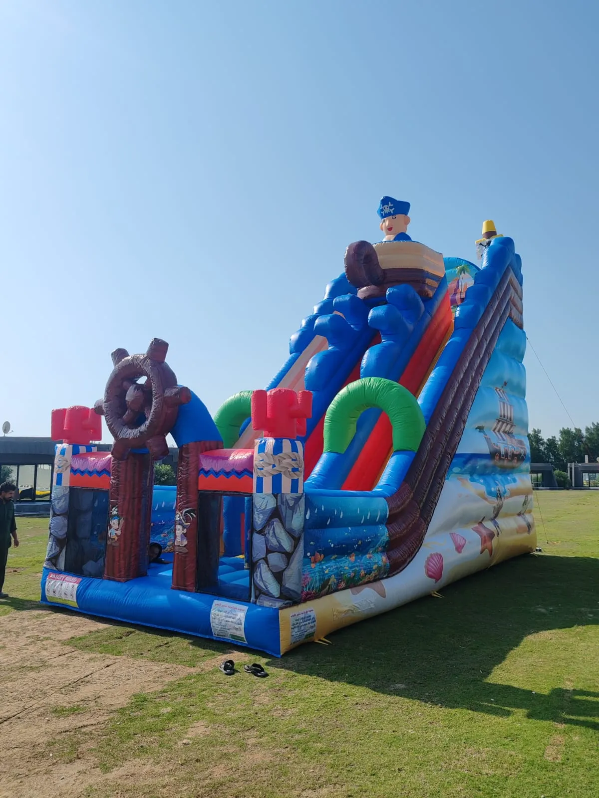 زحليقة القراصنة الضخمة – مغامرات بحرية بأجواء القراصنة للأطفال انطلق مع الأطفال في رحلة شيقة إلى عالم القراصنة والمحيطات عبر "زحليقة القراصنة الضخمة"، المصممة لتمنحهم تجربة مليئة بالإثارة والتشويق. بأبعاد هائلة تبلغ 10 أمتار طولًا، 4.5 أمتار عرضًا، و9 أمتار ارتفاعًا، توفر هذه الزحليقة مساحة لعب واسعة مع تصميم فريد مستوحى من عالم القراصنة، مما يشعل الخيال ويضيف طابع المغامرة على أي فعالية. المميزات: تصميم ثلاثي الأبعاد مستوحى من سفن القراصنة يلفت الأنظار ويثير الحماس. خامات قوية وآمنة لضمان تجربة لعب مستقرة وآمنة للأطفال. أبعاد ضخمة تسمح بعدد أكبر من الأطفال بالتفاعل والحركة في نفس الوقت. سهلة الفك والتركيب، مما يجعلها مثالية للفعاليات المؤقتة أو المناسبات الكبيرة. ألوان جذابة وتفاصيل بحرية دقيقة تعزز من التجربة البصرية والاندماج باللعب. أماكن الاستخدام المثالية: المهرجانات والفعاليات العائلية الكبرى. حفلات أعياد الميلاد بطابع المغامرات. الفعاليات المدرسية ومناسبات الترفيه الجماعية. الحدائق العامة، الساحات المفتوحة، ومراكز الترفيه. امنح الأطفال فرصة خوض مغامرة بحرية حقيقية في بيئة ترفيهية آمنة وشيقة مع زحليقة القراصنة الضخمة. شروط الحجز على العميل التأكد من أن مساحة الموقع مناسبة لحجم الألعاب المطلوبة. لا يتم تركيب الألعاب على الرمل أو الأسطح غير المستوية، كما لا يتم تركيبها في الأدوار العليا نهائيًا. مسؤولية الإشراف على الأطفال تقع على العميل، ويجب وجود أشخاص بالغين للإشراف طوال فترة الاستخدام. يجب التأكد من توفر مصدر كهرباء 220 فولت في موقع التركيب. يمنع تحريك الألعاب بعد تركيبها إلا عن طريق فريق التركيب. يتم دفع مبلغ تأمين مسترد قدره 200 ريال عن كل لعبة عند استلامها بحالة سليمة. قد يتم تركيب وفك الألعاب من بعد الفجر إلى صلاة المغرب، ويختلف وقت التركيب حسب نوع اللعبة والموقع. أي رسوم إضافيه تفرضها مواقع الفعاليات أو الاستراحات يتحملها العميل بالكامل