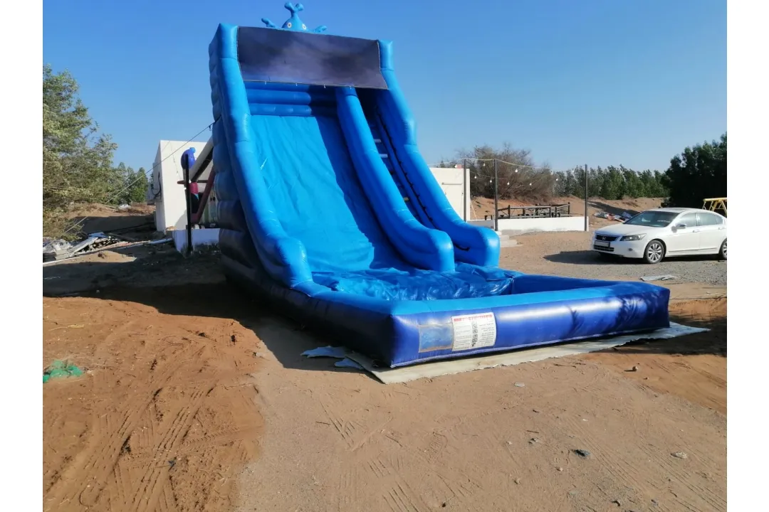 زحليقة قطرة الماء لعبة مائية ممتعة بتصميم مميز مستوحى من شكل قطرة الماء، تمنح الأطفال تجربة انزلاق مليئة بالانتعاش والحماس. تساعد على تفريغ الطاقة والاستمتاع بأجواء الصيف، مع تصميم آمن يناسب الاستخدام المتكرر في الفعاليات والمناطق الترفيهية. مثالية للحفلات الصيفية، المنتجعات، الشواطئ، والملاهي المائية، ومصنوعة من خامات قوية ومقاومة للماء لضمان أعلى مستويات الأمان والمتانة. المقاسات: الارتفاع: 6 متر الطول: 8 متر العرض: 4 متر