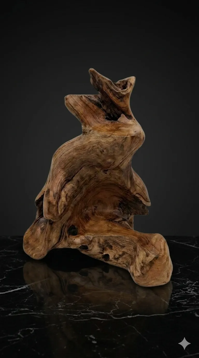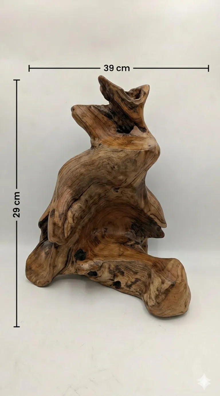 "فن النحت الذي ينبض بالحياة: أضيفي لمسة استثنائية لمساحتك الخاصة مع هذه المنحوتة التي تجسد فن الطبيعة في أنقى صوره. تم استخلاص هذه القطعة من جذوع خشبالتي صقلتها السنوات، ليقوم حرفيونا بتحويلها يدوياً إلى قطعة فنية انسيابية تجمع بين خشونة الجذع الأصلي ونعومة الأطراف المنحوتة. لماذا تقتنين هذه القطعة؟ تصميم مستوحى من الطبيعة: الانحناءات العلوية تعطي شعوراً بالحركة والحرية، مما يجعلها قطعة تخطف الأنظار في المكاتب والمنازل العصرية. تداخل لوني ساحر: يتميز خشببتدرجاته التي تبدأ من الذهبي وصولاً إلى البني المحروق، مما يضفي دفئاً فورياً على المكان. متعددة الاستخدامات: يمكن وضعها كقطعة فنية مستقلة، أو استخدام قاعدتها الثابتة كمنصة لعرض عطورك المفضلة أو قطع المجوهرات الراقية. عمل يدوي حصري: كل عقدة وكل خط في الخشب هو ""بصمة طبيعية"" لا يمكن تكرارها، لتمتلكي قطعة لا يوجد لها مثيل في العالم. أفكار للتنسيق: قطعة مركزية على رف مدفأة أو طاولة جانبية. ستاند فاخر لعرض الساعات أو المقتنيات الثمينة. هدية فاخرة لمن يبحث عن الفخامة والقطع التي تحمل طابعاً تراثياً ومودرن في وقت واحد. 3. المواصفات (Specifications) الخامة: خشب طبيعي 100%. النمط: نحت يدوي حر (Freehand Carving). التشطيب: ملمس ناعم مصقول مع الحفاظ على هوية الخشب الخام. ""ملاحظة: نظراً لأن هذه القطع منحوتة من جذوع الخشب الطبيعي، فإن تفاصيل العروق، التدرجات اللونية، والمنحنيات تختلف تماماً من قطعة لأخرى، مما يمنح كل قطعة هويّة فريدة لا تتكرر. يمكنكم طلب صور حقيقية للقطع المتوفرة حالياً قبل الشحن عبر التواصل معنا، لضمان اختياركم القطعة الأنسب لروح منزلكم."""