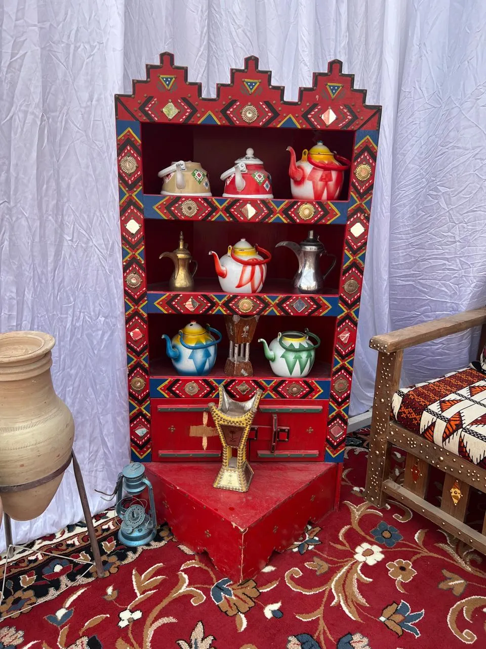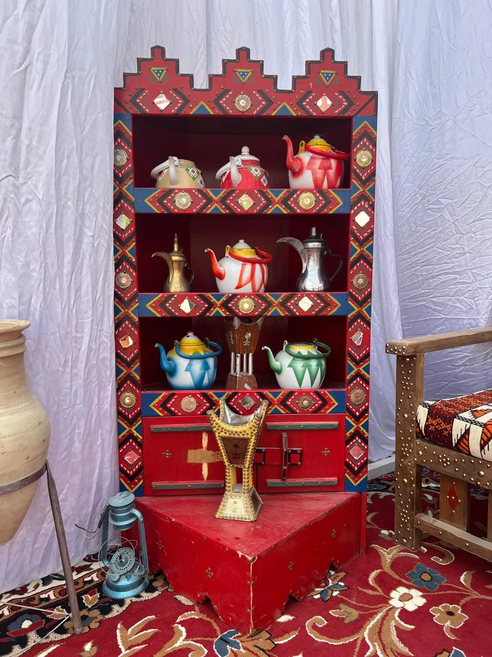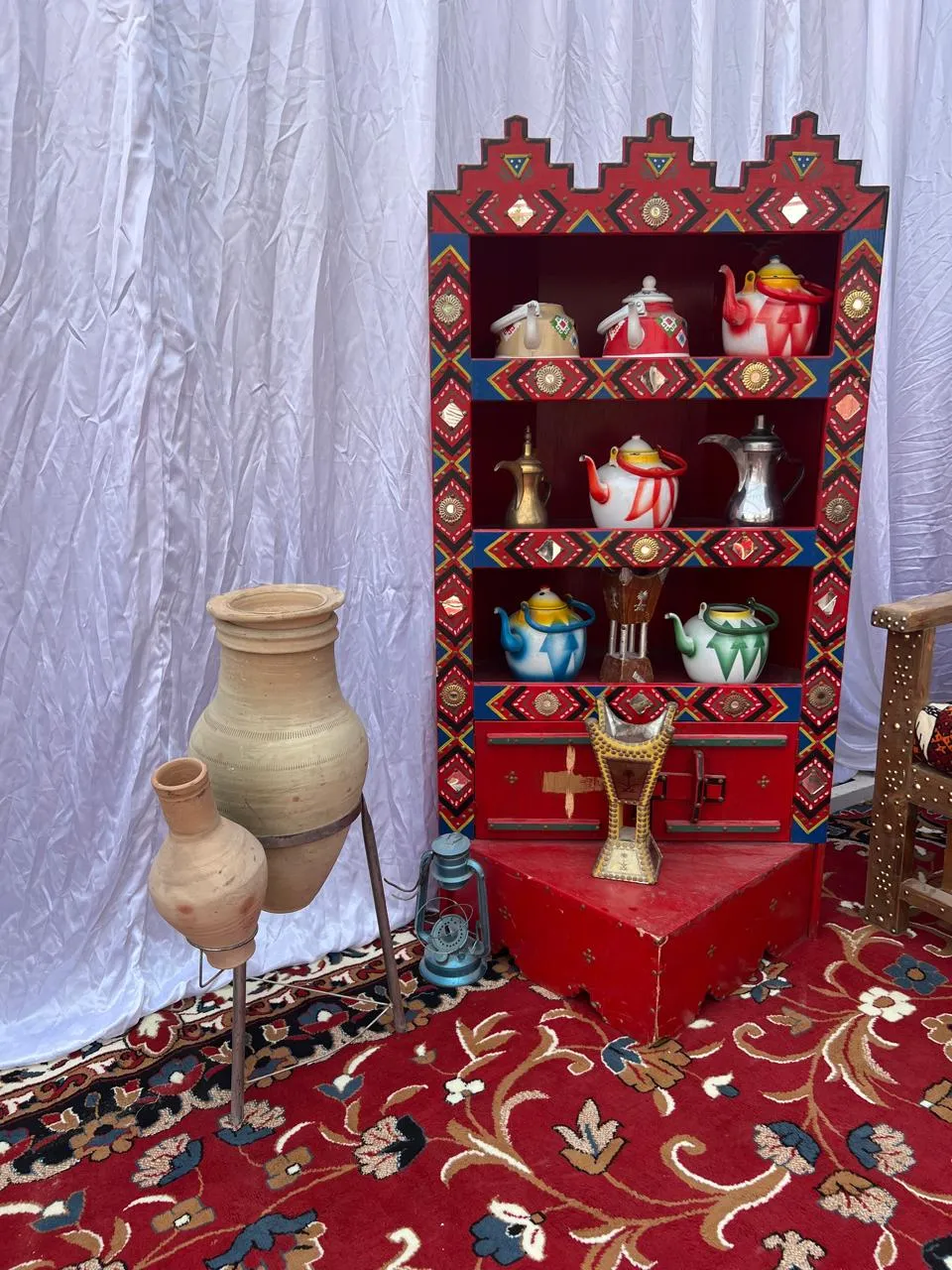 الأشياء التراثية في المملكة العربية السعودية تعبّر عن تاريخ طويل وثقافة غنية، وتشمل كل ما كان يُستخدم في الحياة اليومية قديمًا. إليك أهمها بشكل مبسّط: أدوات وأغراض قديمة الدلّة: إبريق القهوة العربية، رمز الكرم والضيافة المِحماس: لتحميص القهوة الرحى: لطحن الحبوب السراج (الفانوس): للإضاءة قبل الكهرباء القِربة: لحفظ الماء السدو: حياكة الصوف لصناعة بيوت الشعر والسجاد الفخار: صناعة الأواني من الطين النسيج اليدوي: مثل الشيل والأغطية صناعة الخوص: من سعف النخيل (سلال، حصير) الأواني والمطبخ القديم قدور نحاسية للطبخ صاج الخبز المواعين الفخارية أدوات إعداد القهوة والشاي