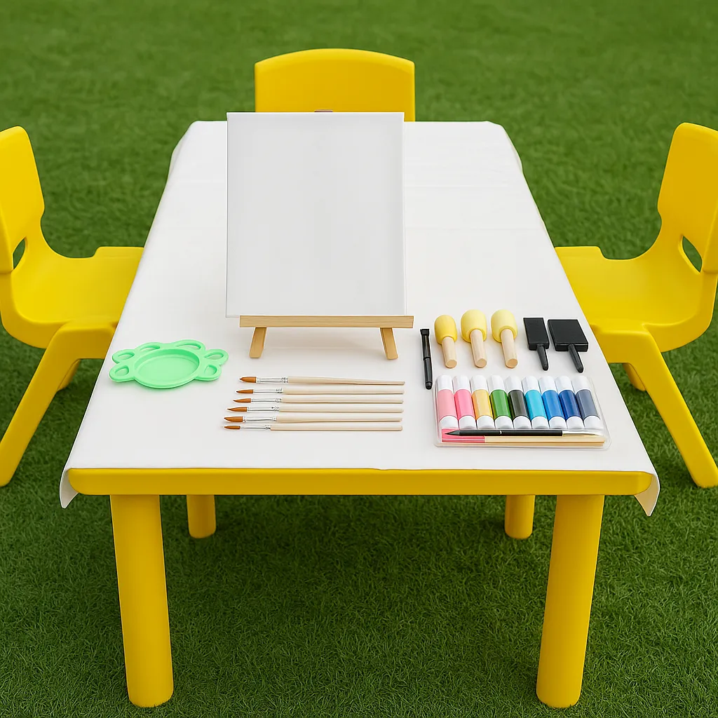 أضف لمسة إبداعية رائعة لحفلات الأطفال مع طاولة الرسام الصغير مع كراسي أطفال 0327، الحل الأمثل لتنمية المواهب الفنية وتشجيع الأطفال على الابتكار والاستمتاع بالرسم في أجواء مرحة وآمنة. يأتي المنتج مجهزًا بكامل الأدوات التي تجعل تجربة الرسم ممتعة ومتكاملة للأطفال، حيث يشمل: 6 كراسي أطفال مريحة بارتفاع 35 سم تناسب الجلوس لفترات طويلة. 6 كانفاس للرسم عالية الجودة. 6 مجموعات فرش متنوعة للرسام الصغير. 6 علب ألوان مائية زاهية. 6 مريلات بلاستيكية لحماية ملابس الأطفال. 6 أقلام رصاص مخصصة للرسم. --- ⭐ مميزات المنتج: مناسب للحفلات، الفعاليات، المدارس، والمراكز التعليمية. يشجع على الإبداع والتعاون بين الأطفال. تصميم آمن ومريح مخصص للأطفال. جميع الأدوات يتم تنظيفها وتعقيمها بالكامل قبل كل استخدام لضمان أعلى معايير السلامة. يوفر تجربة متكاملة تجمع بين المتعة والتعلم. --- 🏡 الاستخدامات المثالية: حفلات أعياد الميلاد. الفعاليات المدرسية. المراكز التعليمية وورش الأطفال. جلسات عائلية وأنشطة فنية داخلية أو خارجية. --- 🚚 التوصيل والتركيب: التوصيل والتركيب مجاني داخل مدينة الرياض بما فيها العماريه والدرعيه والمناطق المجاورة. يتم التوصيل يوميًا من الساعة 10 صباحًا حتى 5 مساءً. في حال الرغبة في وقت محدد أو وجود طلبات خاصة، يجب تدوينها في ملاحظات المنتج عند إتمام الطلب. يمكن استلام المنتجات من الساعة 12 صباحًا حتى 2 صباحًا.