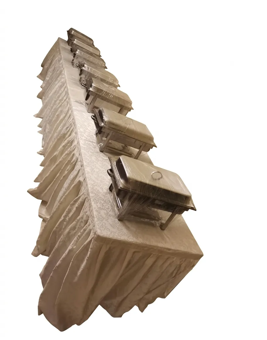 تأجير طاولة بوفيه مستطيلة مع "اسكرتنج" فاخر - نظام كشكش ملكي.