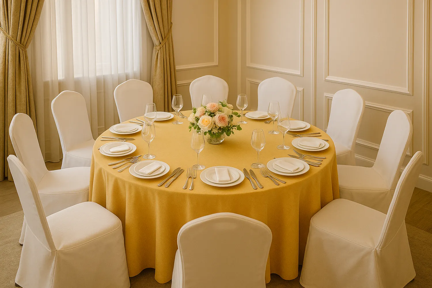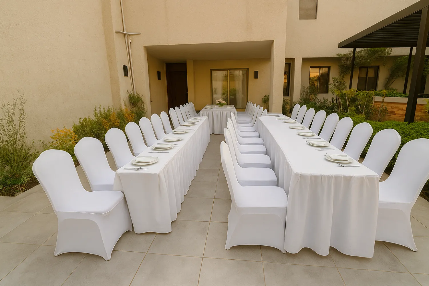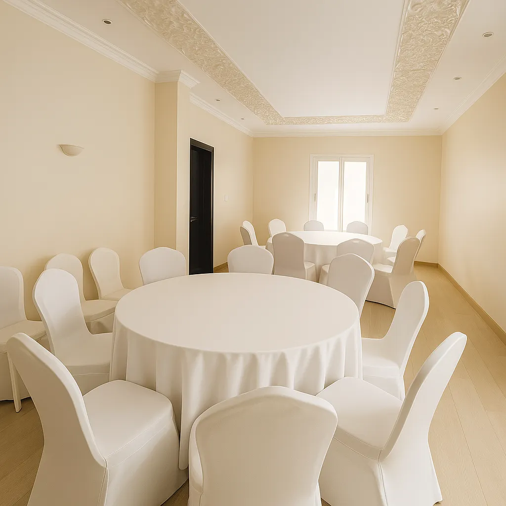 أضف لمسة فاخرة لمناسبتك مع طاولة أنيقة، سواء كانت دائرية أو طولية، مغطاة بمفرش عالي الجودة، يحيط بها 8 كراسٍ مكسوة بأغطية فاخرة باللون الأبيض. تصميم مثالي لحفلات الزفاف، الولائم، الاجتماعات أو أي مناسبة خاصة، مع مظهر عصري يليق بجميع أنماط الديكور. المواصفات: عدد الكراسي: 8 كراسٍ مغطاة شكل الطاولة: دائرية أو طولية حسب الرغبة اللون: أبيض مع مفرش أنيق مناسبة للاستخدام الداخلي والخارجي مثالية للمناسبات، الحفلات، المؤتمرات والولائم التوصيل والتركيب مجاني بالدمام والخبر