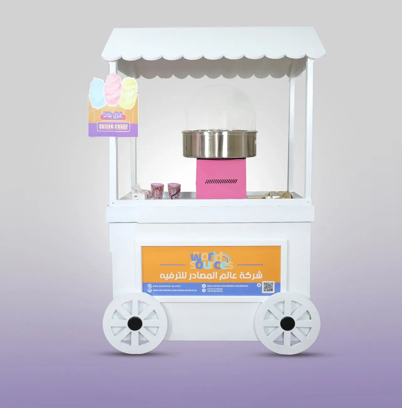 عربة غزل البنات تضيف لمسة من الفرح والحلاوة في كل فعالية، سهلة الاستخدام وآمنة، تقدّم غزل بنات طازج وشهي يجذب الأطفال والكبار ويصنع أجواء مليانة سعادة المقاسات : L 80cm × W 120cm × H 225cm