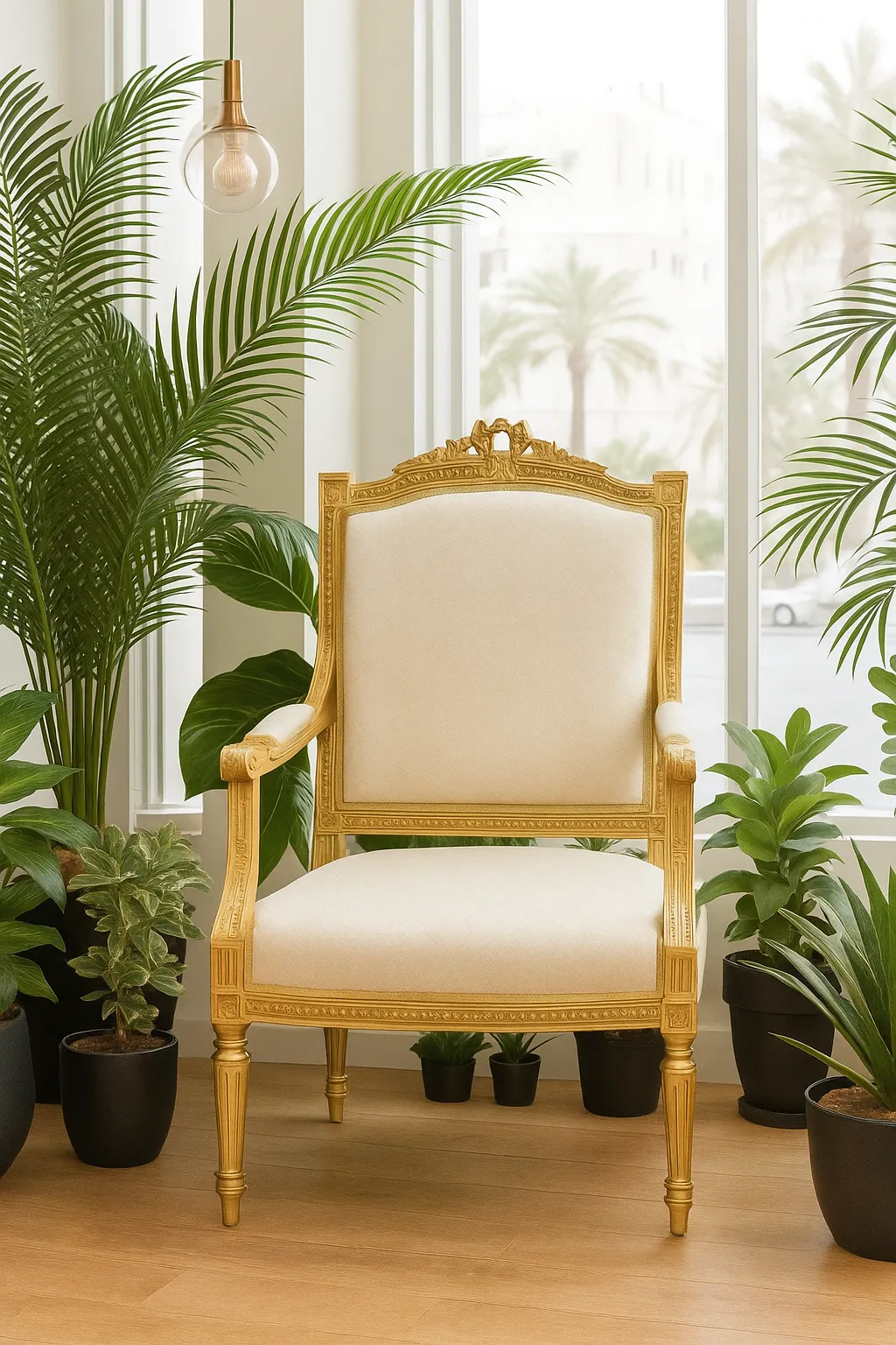 أضف لمسة فاخرة وأجواء راقية لمناسبتك مع هذا الكرسي الملكي الفخم بتصميم كلاسيكي مذهّب، مصنوع بإطار خشبي متين وزخارف أنيقة تعكس الفخامة والذوق الرفيع. يتميز بقماش أبيض فاخر ومقعد مريح مثالي لـ حفلات الزفاف، الخطوبة، التصوير الفوتوغرافي، المعارض، والفعاليات الخاصة. متاح للإيجار اليومي أو حسب مدة المناسبة خدمة التوصيل والترتيب في الموقع.