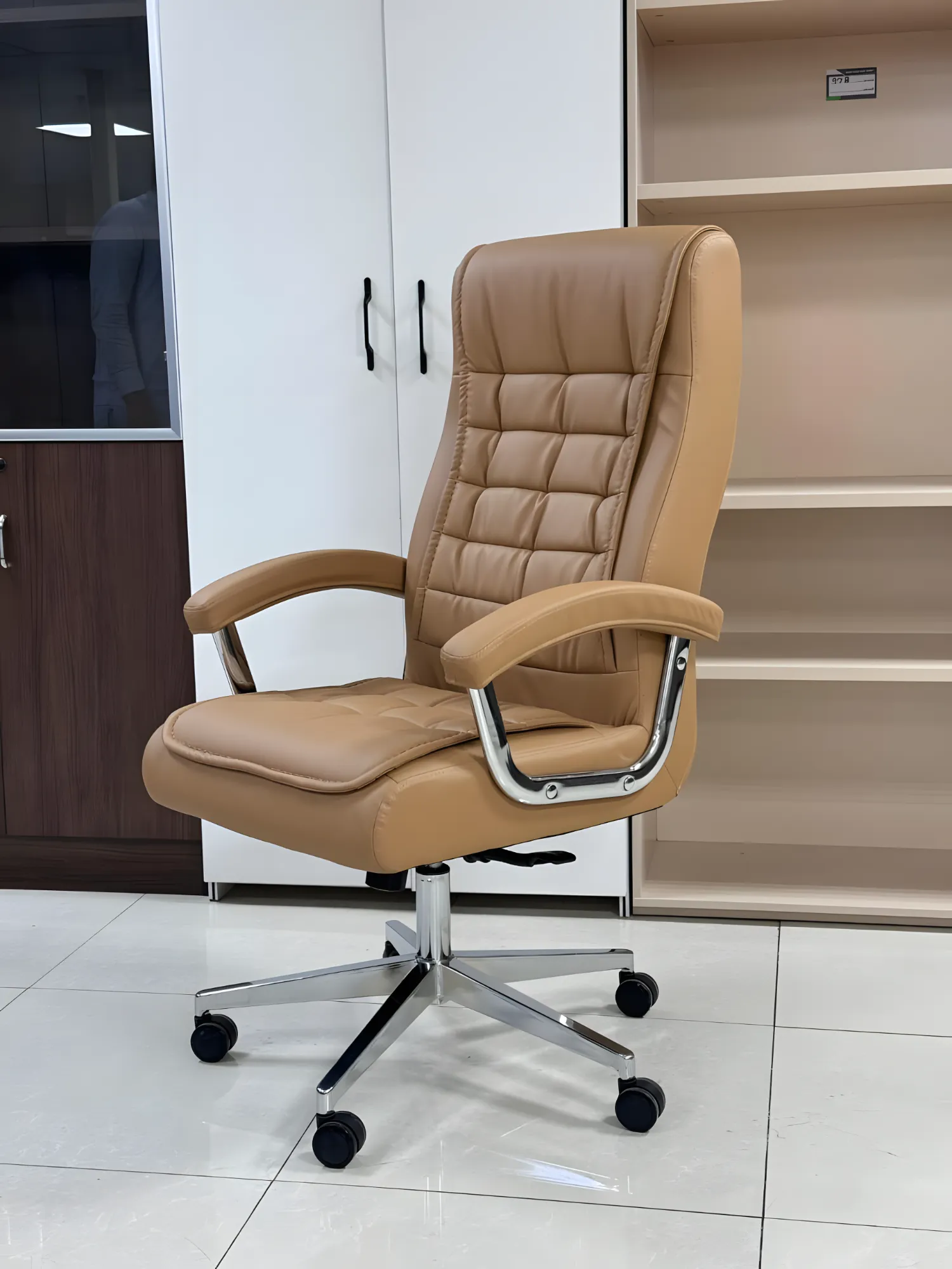 كرسي مكتبي متحرك فاخر باللون البيج – تصميم مريح مثالي للمكاتب والاجتماعات