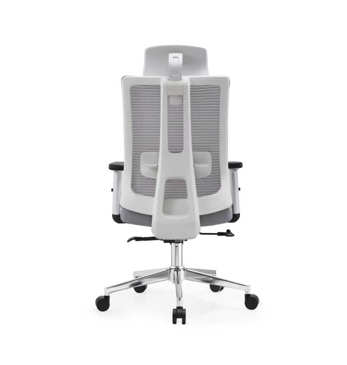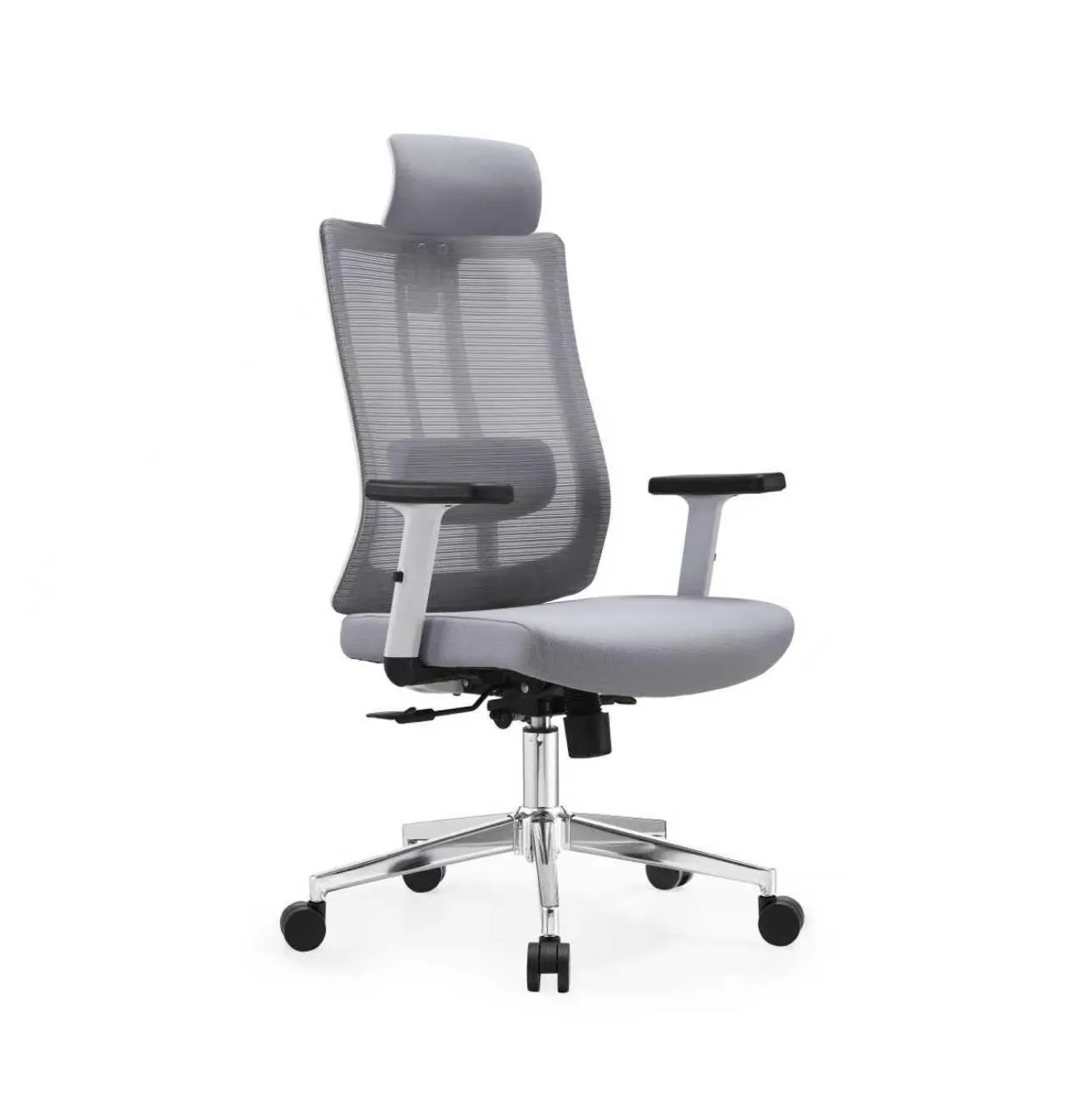 كرسي مكتبي مدير عام بأرجل نجمية متحركة مع مسند للراس وبخاصية التحكم بالذراع والظهر والارتفاع ويأتي بلونين الأسود والأبيض .