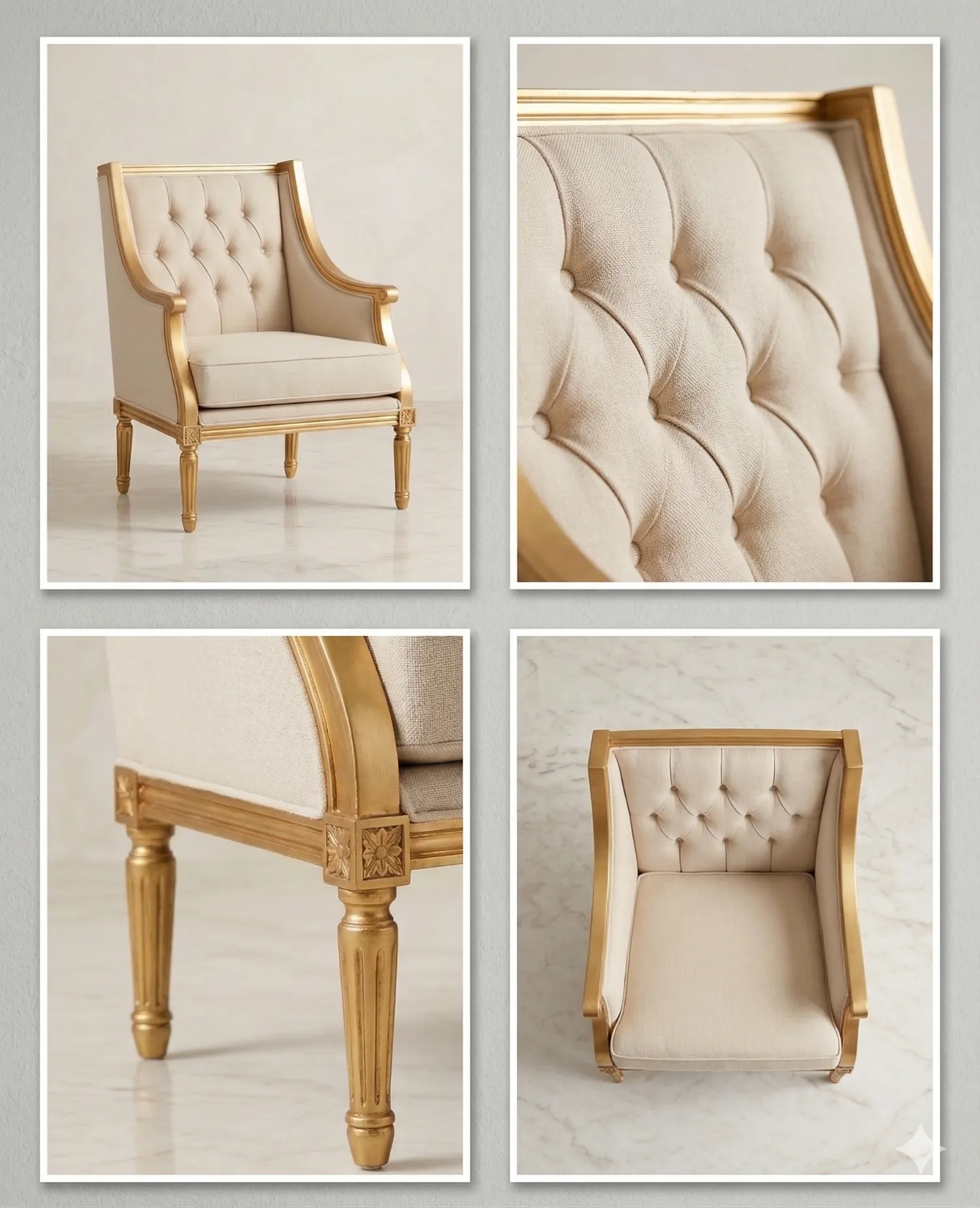 أضف لمسة من الفخامة الكلاسيكية إلى مناسبتك مع هذا الكرسي الملكي. يتميز بتصميم أنيق بإطار ذهبي لامع وتنجيد مبطن ومريح باللون السكري الفاتح، مما يجعله الخيار الأمثل لحفلات الزفاف، وجلسات التصوير، ومناطق استقبال كبار الضيوف."