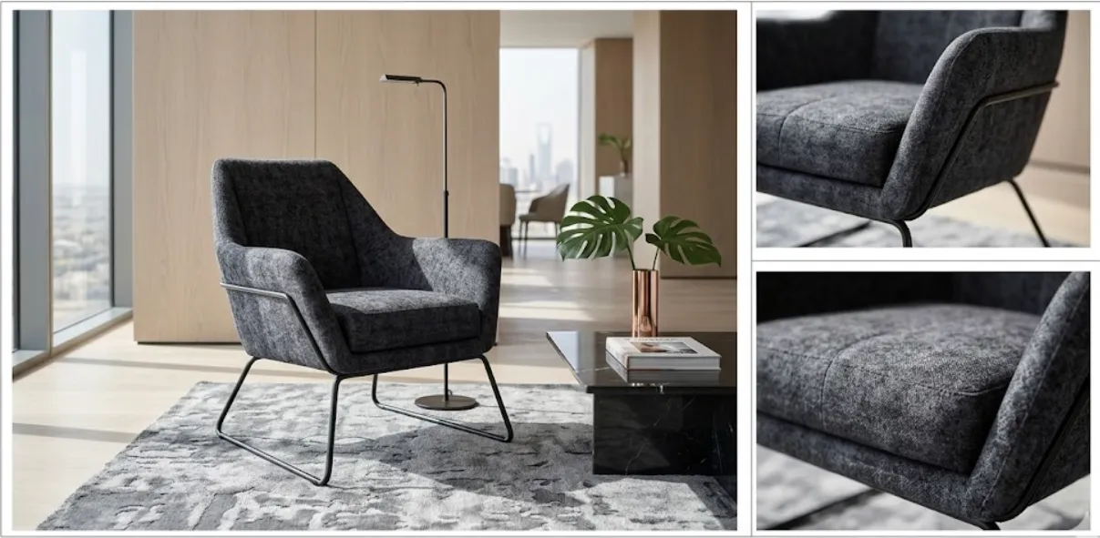 ادخل عالم الأناقة اللامتناهية مع كرسي "نوار"، حيث يلتقي التصميم الهندسي المبتكر بروح الفخامة الكلاسيكية. بفضل قماشه المخملي الغني ذو الملمس الرخامي الفريد وقاعدته المعدنية الرفيعة، يعد هذا الكرسي قطعة مركزية تأسر الأنظار وتوفر راحة استثنائية