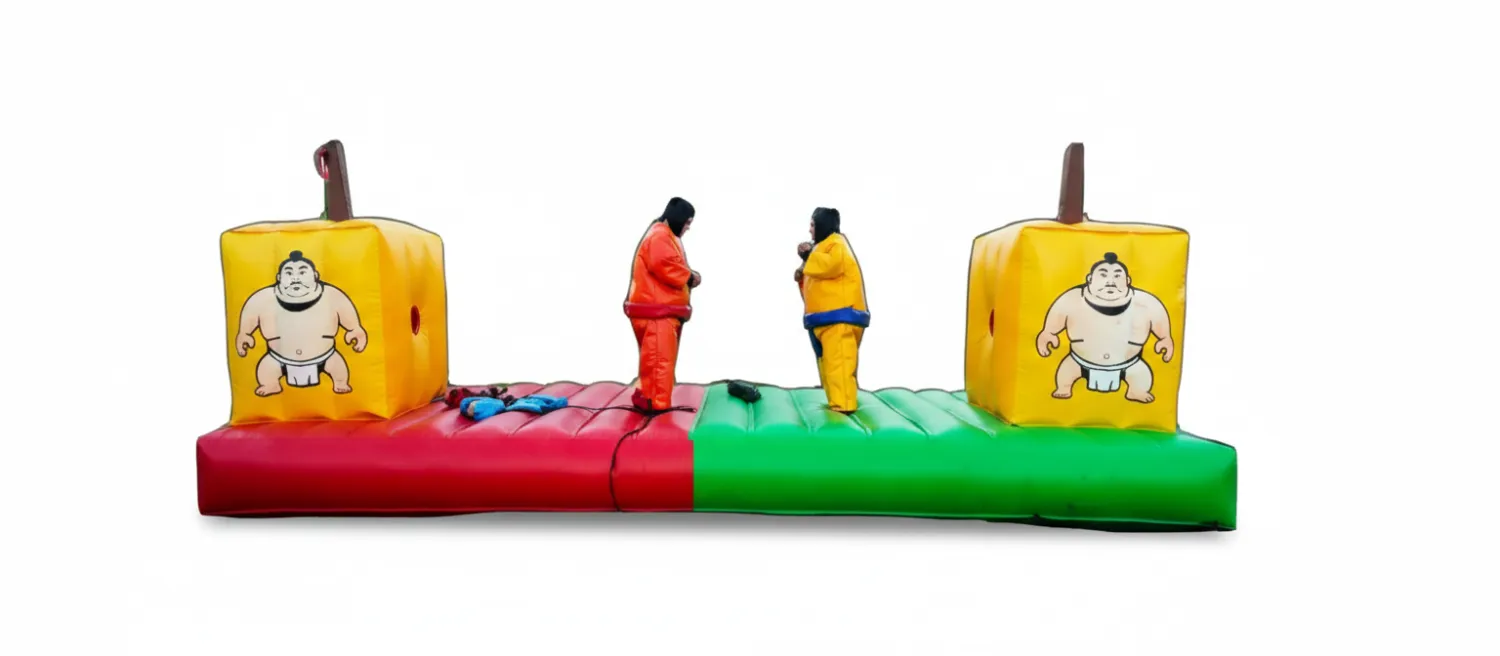 استعدوا للضحك والإثارة مع لعبة "السومو" الشهيرة! توفر هذه الحلبة الهوائية الملونة (الأحمر والأخضر) بيئة مثالية لمنافسات المصارعة الودية، حيث يرتدي اللاعبون بدلات السومو الضخمة ويحاولون إخراج بعضهم البعض من المنطقة المحددة. بفضل تصميمها الطولي ومنصات البداية المرتفعة، تعتبر هذه اللعبة من أفضل الأنشطة الترفيهية للمهرجانات، حفلات الشركات، والجمعات الشبابية التي تبحث عن تحدي جسدي فكاهي وآمن تماماً. الأبعاد: طول 8م | عرض 4م. أبرز المميزات: تصميم طولي يسمح بمساحة حركة واسعة، حلبة هوائية مبطنة لضمان سقوط آمن، وشخصيات سومو مرسومة تضفي طابعاً بصرياً ممتعاً على الفعالية.