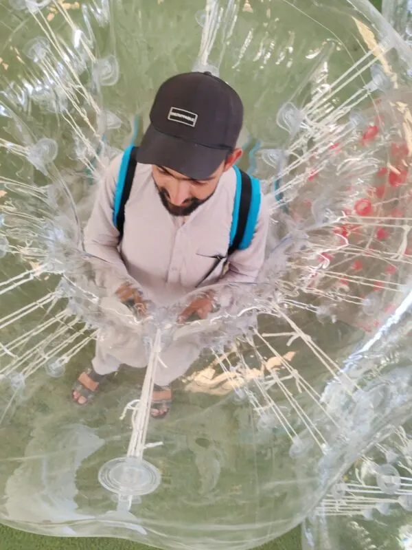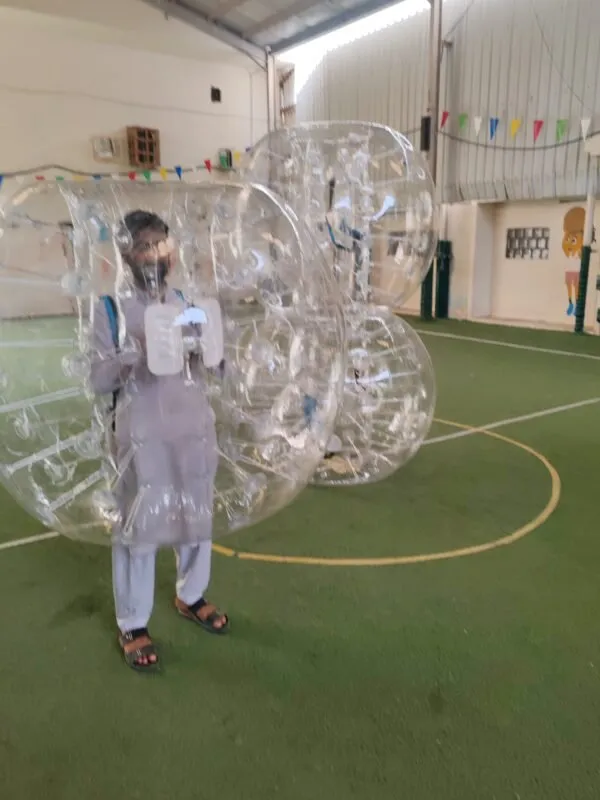 اكتشف عالمًا من المرح والنشاط مع لعبة كور التصادم الهوائية الممتعة، المصممة لتمنح الأطفال والمراهقين تجربة لعب فريدة ومليئة بالحركة. داخل كرة هوائية آمنة بقطر 150 سم، يمكن للمشاركين الاصطدام والقفز والتدحرج بحرية تامة، مما يجعلها مثالية للأنشطة الجماعية، الترفيهية، والحركية. القطر: 150 سم ⭐ المميزات: تصميم دائري مغلق يوفر أقصى درجات الحماية أثناء اللعب. مصنوعة من خامات متينة وخفيفة الوزن تتحمل الصدمات المتكررة. تشجع على النشاط البدني، التفاعل الجماعي، والضحك المتواصل. مناسبة للأطفال والمراهقين ضمن فئات عمرية مختلفة. سهلة النفخ والتفريغ، والتنقل بها بين الفعاليات بسيط وسريع. 🏟️ أماكن الاستخدام المثالية: الفعاليات الرياضية والترفيهية المدارس والأنشطة الطلابية حفلات أعياد الميلاد والمهرجانات الحدائق الخاصة والاستراحات المعسكرات والمراكز الشبابية أضف روح التحدي والمرح إلى أي مناسبة مع كور التصادم الهوائية، حيث المتعة والضحك لا يتوقفان ضمن تجربة آمنة ومثيرة. شروط الحجز على العميل التأكد من أن مساحة الموقع مناسبة لحجم الألعاب المطلوبة. لا يتم تركيب الألعاب على الرمل أو الأسطح غير المستوية، كما لا يتم تركيبها في الأدوار العليا نهائيًا. مسؤولية الإشراف على الأطفال تقع على العميل، ويجب وجود أشخاص بالغين للإشراف طوال فترة الاستخدام. يجب التأكد من توفر مصدر كهرباء 220 فولت في موقع التركيب. يمنع تحريك الألعاب بعد تركيبها إلا عن طريق فريق التركيب. يتم دفع مبلغ تأمين مسترد قدره 200 ريال عن كل لعبة عند استلامها بحالة سليمة. قد يتم تركيب وفك الألعاب من بعد الفجر إلى صلاة المغرب، ويختلف وقت التركيب حسب نوع اللعبة والموقع. أي رسوم إضافيه تفرضها مواقع الفعاليات أو الاستراحات يتحملها العميل بالكامل