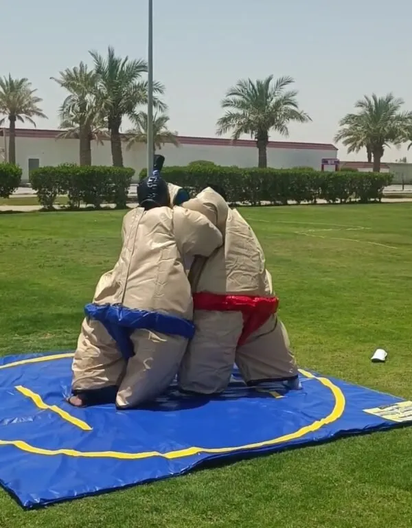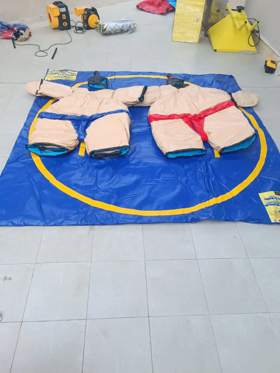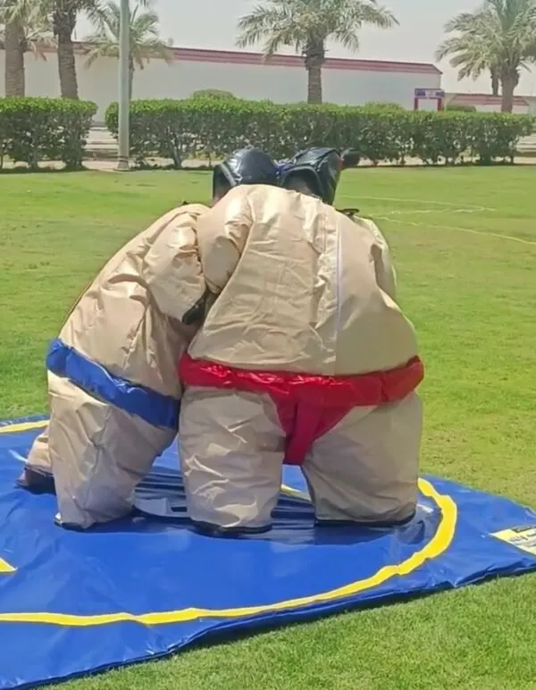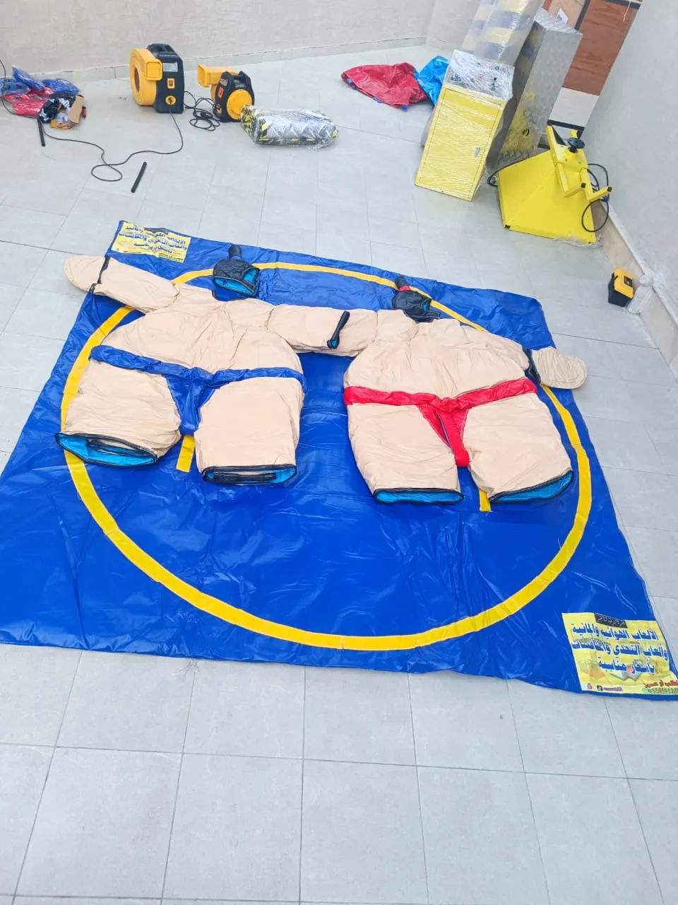 أضف أجواء من المرح والمنافسة إلى فعاليتك مع لعبة مصارعة السومو المطاطية، الخيار المثالي لتجربة ترفيهية تجمع بين الضحك والتحدي البدني في بيئة آمنة. تأتي اللعبة بحلبة دائرية مطاطية بمقاس (الطول: 3 متر – العرض: 3 متر)، مع بدلات سومي ضخمة قابلة للنفخ تمنح المشاركين مظهر المصارعين اليابانيين بطريقة فكاهية وآمنة. المميزات: بدلات مبطنة بالكامل تمنح الأمان أثناء السقوط والتصادم. تشجع على التفاعل الاجتماعي والمنافسة بين اللاعبين. تصميم سهل التركيب والنقل، مناسب للفعاليات المتنقلة. آمنة ومناسبة للأطفال والمراهقين والبالغين. أماكن الاستخدام: حفلات أعياد الميلاد والمناسبات العائلية. الفعاليات المدرسية والمعسكرات الصيفية. مهرجانات الترفيه والمراكز التجارية. فعاليات الشركات والمسابقات الجماهيرية. شروط الحجز على العميل التأكد من أن مساحة الموقع مناسبة لحجم الألعاب المطلوبة. لا يتم تركيب الألعاب على الرمل أو الأسطح غير المستوية، كما لا يتم تركيبها في الأدوار العليا نهائيًا. مسؤولية الإشراف على الأطفال تقع على العميل، ويجب وجود أشخاص بالغين للإشراف طوال فترة الاستخدام. يجب التأكد من توفر مصدر كهرباء 220 فولت في موقع التركيب. يمنع تحريك الألعاب بعد تركيبها إلا عن طريق فريق التركيب. يتم دفع مبلغ تأمين مسترد قدره 200 ريال عن كل لعبة عند استلامها بحالة سليمة. قد يتم تركيب وفك الألعاب من بعد الفجر إلى صلاة المغرب، ويختلف وقت التركيب حسب نوع اللعبة والموقع. أي رسوم إضافيه تفرضها مواقع الفعاليات أو الاستراحات يتحملها العميل بالكامل