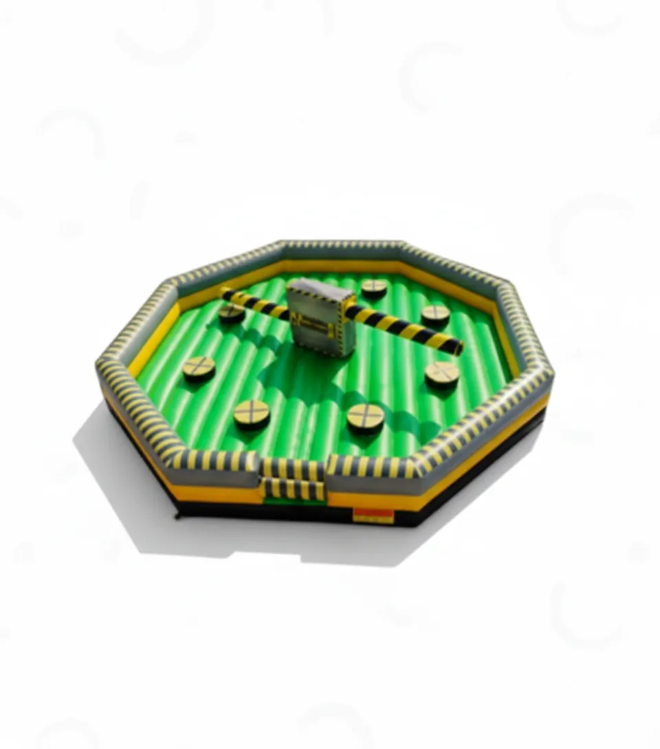 اختبر مهاراتك في القفز والانحناء مع لعبة "ملت داون" الأكثر إثارة! تعتمد هذه اللعبة التفاعلية على ذراعين ميكانيكيين يدوران بسرعات متفاوتة، حيث يجب على اللاعبين الثبات على منصاتهم وتجنب الذراعين للبقاء في اللعبة. تعتبر هذه اللعبة قمة الأنشطة الترفيهية في المهرجانات، والفعاليات الرياضية، وحفلات بناء الفريق، حيث تجمع بين المنافسة العالية والضحك المستمر لجميع المشاركين. الأبعاد: طول 6م | عرض 6م. أبرز المميزات: تتسع لـ 8 لاعبين في وقت واحد، تحكم إلكتروني في السرعة والاتجاه، وتصميم آمن مع أرضية مبطنة بالكامل لضمان سلامة اللاعبين عند السقوط.
