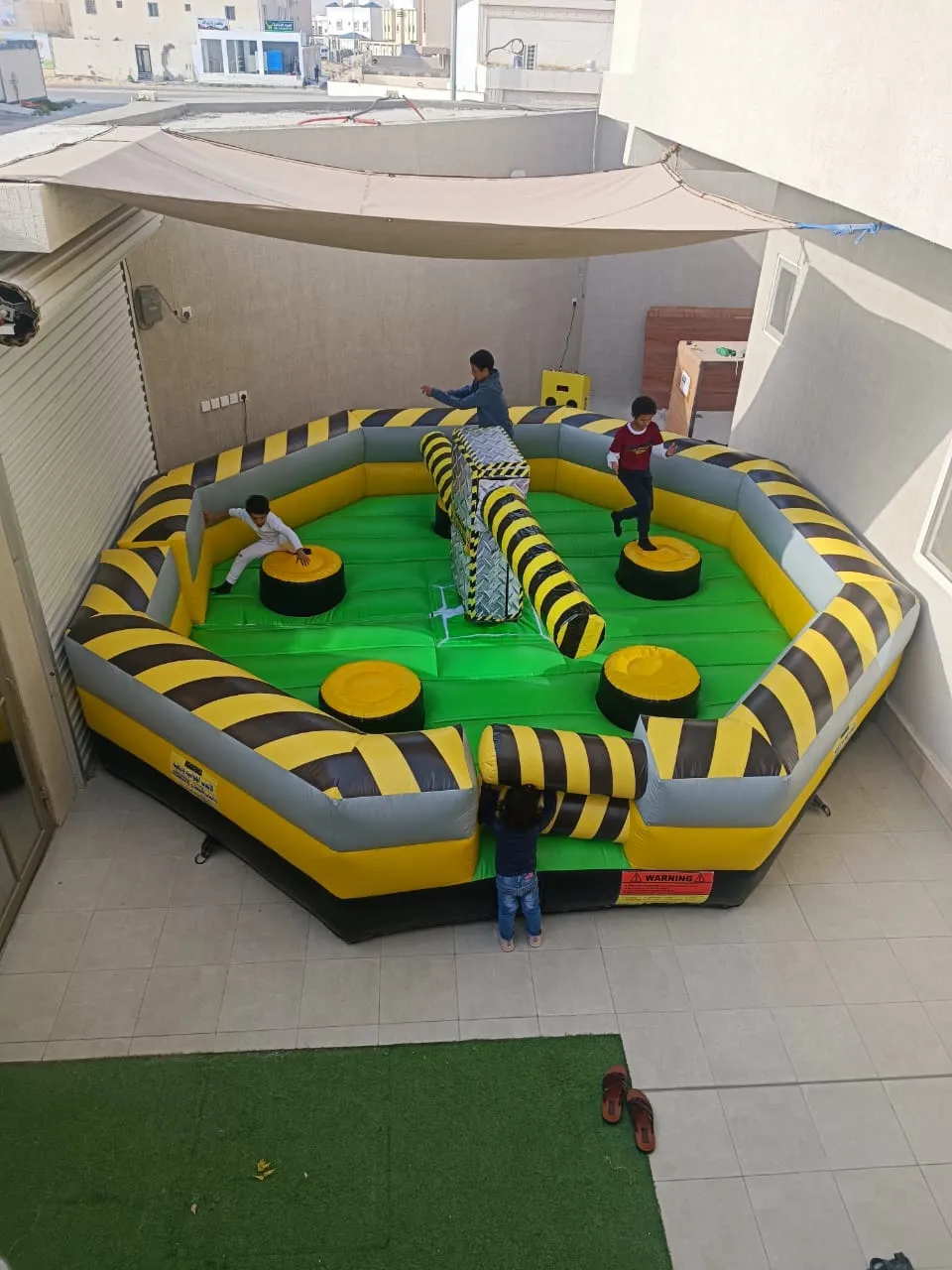 استعد لجرعة مكثفة من الحماس والتحدي مع لعبة ميلتداون بالعصا الدوارة – واحدة من أكثر الألعاب الترفيهية حيوية وإثارة، حيث يتطلب منك القفز أو الانخفاض بسرعة لتفادي الذراع الدوارة قبل أن تصيبك. بتصميم دائري واسع (الطول: 6 م – العرض: 6 م – الارتفاع: 1.5 م)، تتيح هذه اللعبة مشاركة عدة لاعبين في وقت واحد في تجربة مليئة بالضحك وردود الفعل السريعة. المميزات: نظام عصا دوارة بسرعة قابلة للتحكم. تناسب جميع الفئات العمرية فوق سن محدد. قاعدة مطاطية آمنة تقلل من أثر السقوط. تصميم جاذب للأنظار يضيف طاقة للفعالية. تحفيز روح التنافس الجماعي والتفاعل المباشر. أماكن الاستخدام: المهرجانات والفعاليات الجماهيرية. المدارس والجامعات والمخيمات الشبابية. أركان التحدي في الفعاليات العائلية. المعارض والأنشطة الترويجية والتجارية. شروط الحجز على العميل التأكد من أن مساحة الموقع مناسبة لحجم الألعاب المطلوبة. لا يتم تركيب الألعاب على الرمل أو الأسطح غير المستوية، كما لا يتم تركيبها في الأدوار العليا نهائيًا. مسؤولية الإشراف على الأطفال تقع على العميل، ويجب وجود أشخاص بالغين للإشراف طوال فترة الاستخدام. يجب التأكد من توفر مصدر كهرباء 220 فولت في موقع التركيب. يمنع تحريك الألعاب بعد تركيبها إلا عن طريق فريق التركيب. يتم دفع مبلغ تأمين مسترد قدره 200 ريال عن كل لعبة عند استلامها بحالة سليمة. قد يتم تركيب وفك الألعاب من بعد الفجر إلى صلاة المغرب، ويختلف وقت التركيب حسب نوع اللعبة والموقع. أي رسوم إضافيه تفرضها مواقع الفعاليات أو الاستراحات يتحملها العميل بالكامل