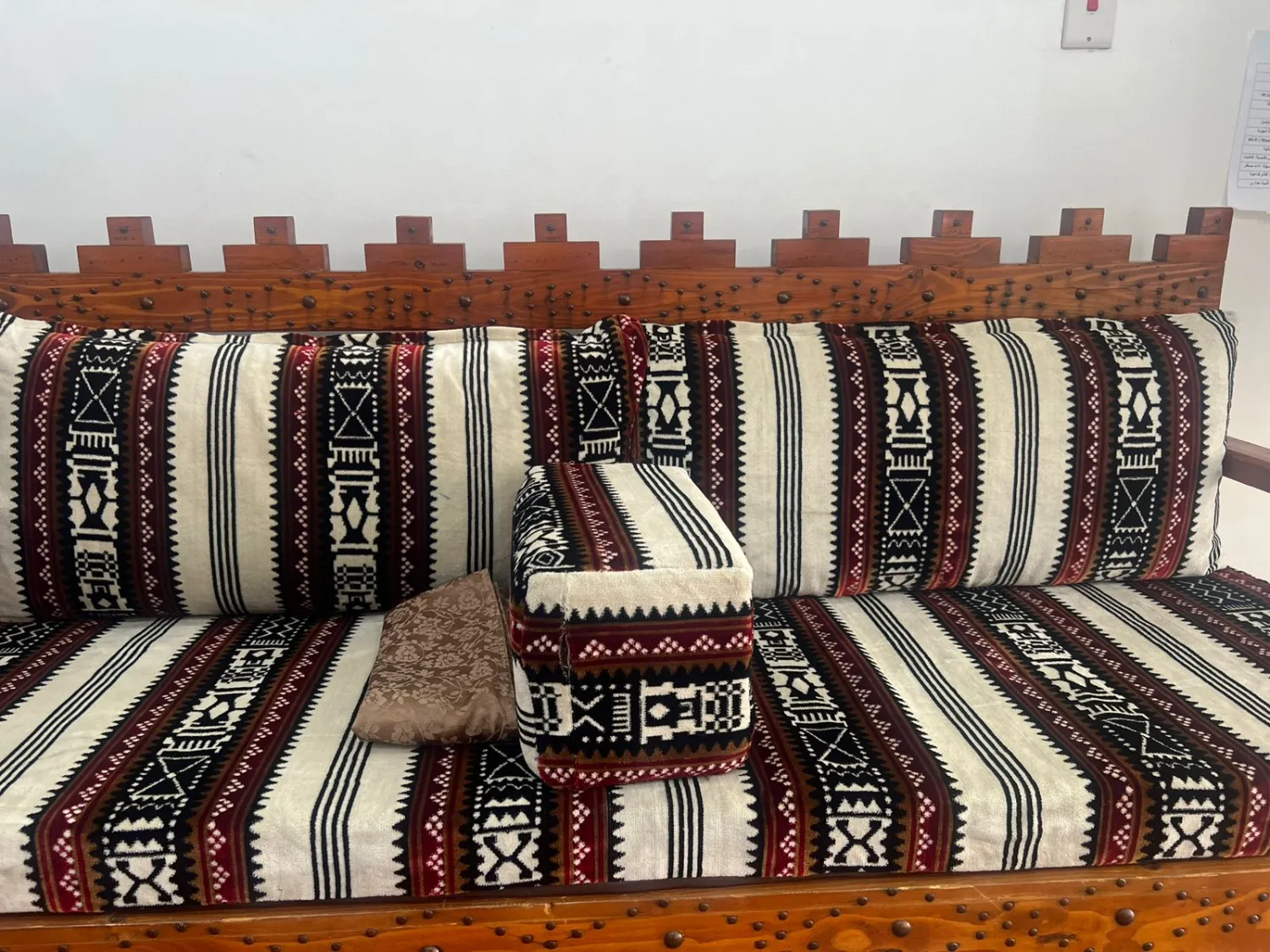 المجلس الخشبي الشعبي المرتفع هو مساحة جلوس تقليدية تتميز بطابعها التراثي وارتفاعها النسبي عن مستوى الأرض، حيث يُنشأ عادةً باستخدام الخشب المتين ويُدعم بهيكل قوي يضمن الثبات والتحمل. يُصمم هذا النوع من المجالس ليكون مريحًا وعمليًا، وغالبًا ما يُغطى بالسجاد أو الحصر، مع إضافة وسائد أرضية (مساند) توفر الراحة للجلوس لفترات طويلة. يُعتمد في تصميمه على الطابع البسيط المستوحى من البيئة المحلية، مع إبراز تفاصيل النجارة التقليدية مثل الزخارف اليدوية أو النقوش البسيطة. وقد يكون المجلس مفتوحًا أو شبه مغلق، ويُستخدم في الاستراحات أو الساحات الخارجية. الارتفاع في هذا المجلس يمنحه ميزة الحماية من الرطوبة والأتربة، كما يوفر تهوية أفضل خاصة في البيئات الحارة. ويُستخدم عادةً لاستقبال الضيوف أو للتجمعات العائلية، حيث يجمع بين الأصالة والوظيفة العملية، ويعكس روح الكرم والضيافة في الثقافة الشعبية.