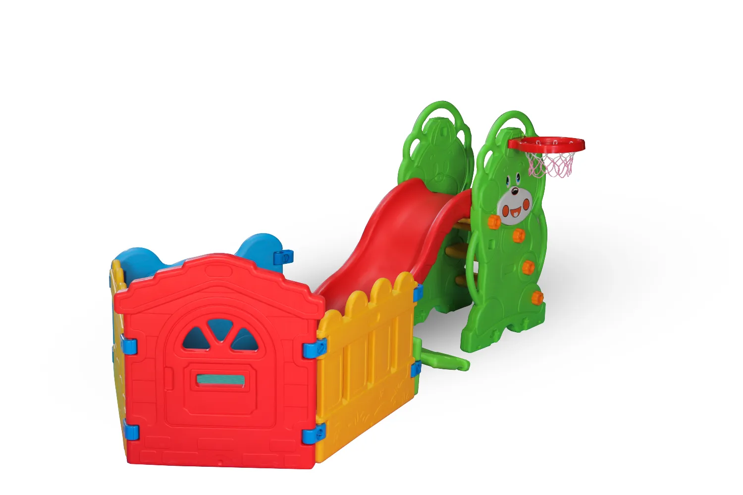 مجموعة ألعاب أطفال متكاملة تجمع بين المرح، الحركة، والأمان، مصممة خصيصًا لتمنح الطفل تجربة لعب ممتعة تساعده على تفريغ طاقته وتنمية مهاراته الحركية في بيئة آمنة تمامًا. تتكون المجموعة من زحليقة قوية وسياج لعب واسع يوفر مساحة مخصصة للعب الحر، مع تصميم جذاب وألوان زاهية تلفت انتباه الأطفال وتشجعهم على التفاعل. - الزحليقة مصممة بارتفاع مناسب للأطفال، مع سطح انزلاق أملس وحواف مستديرة لمنع أي إصابات، بالإضافة إلى درجات صعود ثابتة تسهّل على الطفل الصعود بأمان. - كما تحتوي المجموعة على حلقة كرة سلة جانبية تزيد من متعة اللعب وتنمّي التناسق بين اليد والعين. - السياج المحيط يوفر منطقة لعب آمنة، ويساعد الأهل على ترك الطفل يلعب بحرية دون قلق، سواء داخل المنزل أو في الحديقة. - جميع الأجزاء مصنوعة من بلاستيك عالي الجودة، غير سام، مقاوم للكسر، وسهل التنظيف. - أبعاد الزحليقة: 160 سم (طول) × 48 سم (عرض) × 105 سم (ارتفاع) - مساحة السياج: 1.5 متر مربع أبعاد السياج: - الارتفاع 80 سم × العرض 80 سم - تصميم آمن بحواف ناعمة وثابتة - ألوان جذابة تشجع الطفل على اللعب - يساعد على تنمية المهارات الحركية والتوازن - مناسب للاستخدام الداخلي والخارجي - سهل التركيب والفك - مناسب للأطفال من عمر صغير - تجربة لعب مليئة بالحماس وآمنة في نفس الوقت